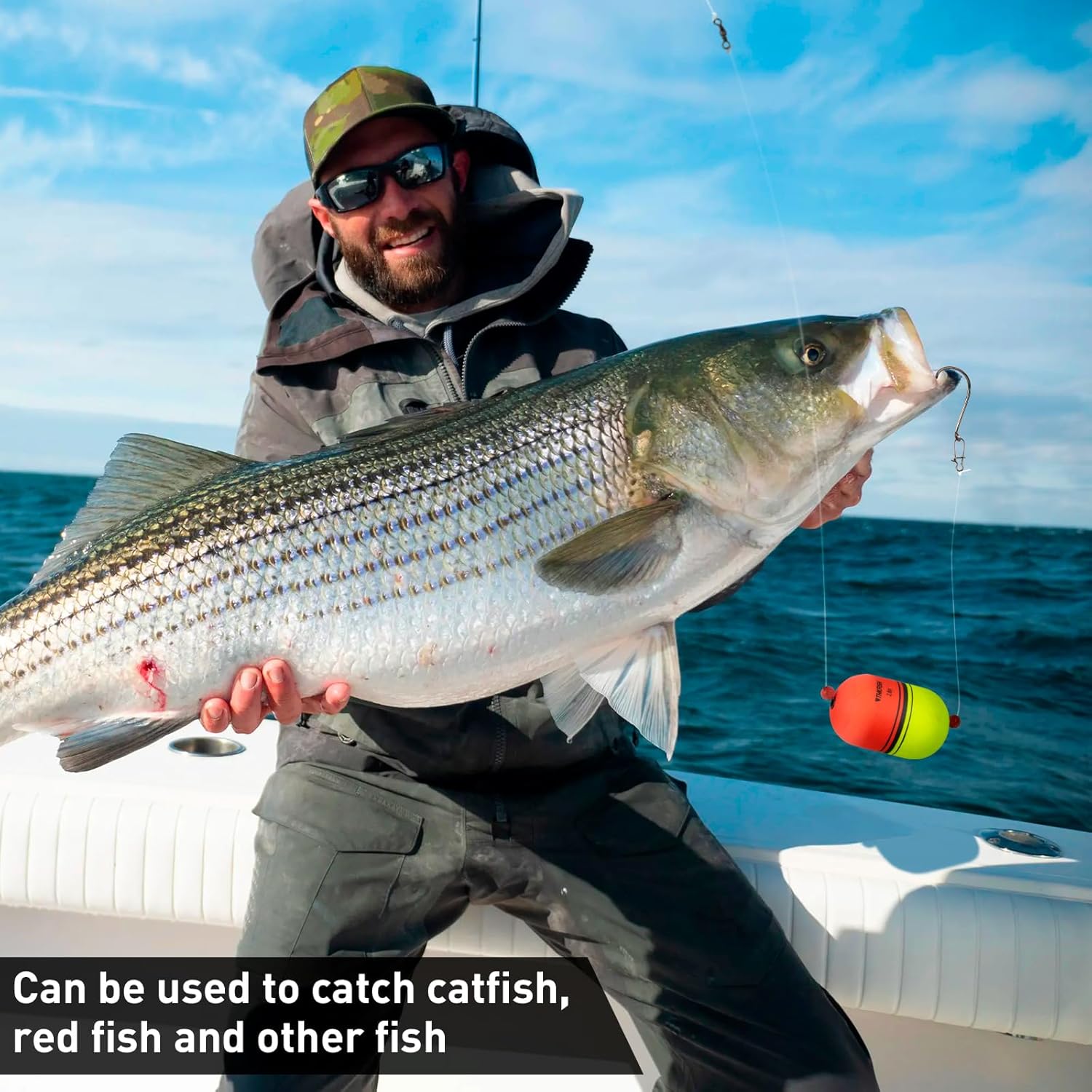 HIGH SENSITIVITY AND VISIBILITY: The sensitive EVA fishing bobbers floats allows you to get the first signals when the fish are biting. On windy days, the float is properly weighted to stay below the surface of the water most of the time, meaning that its drift and attitude are controlled by the current rather than the wind. The large size and high visibility colors give it unmatched visibility at any distance