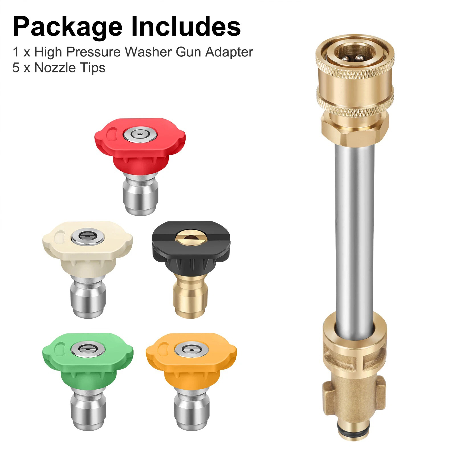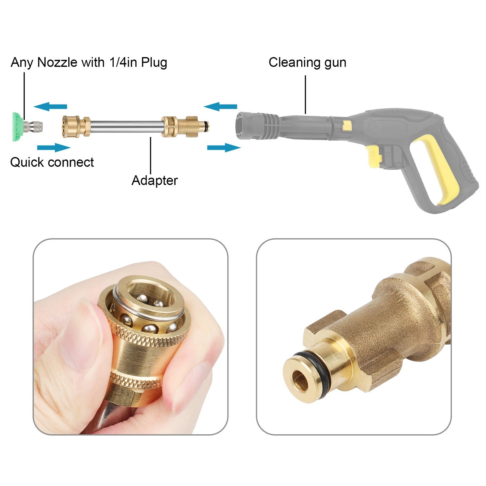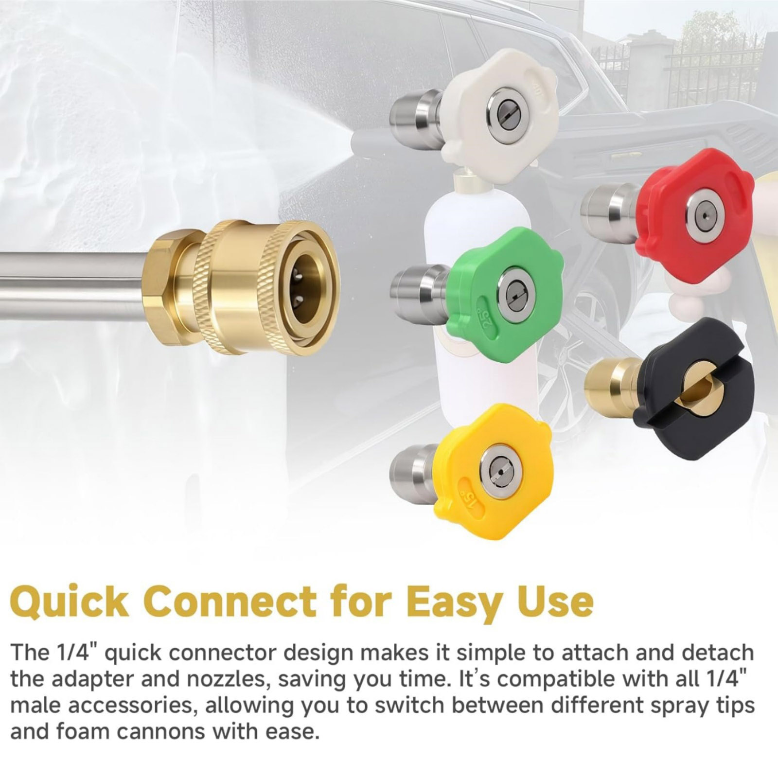 3. 1/4" Quick Connect System: Easy Snap-On And Off Connection To Pressure Washer Hoses And Wands. No Tools Needed, Fast Switching, Leak-Proof And Secure.