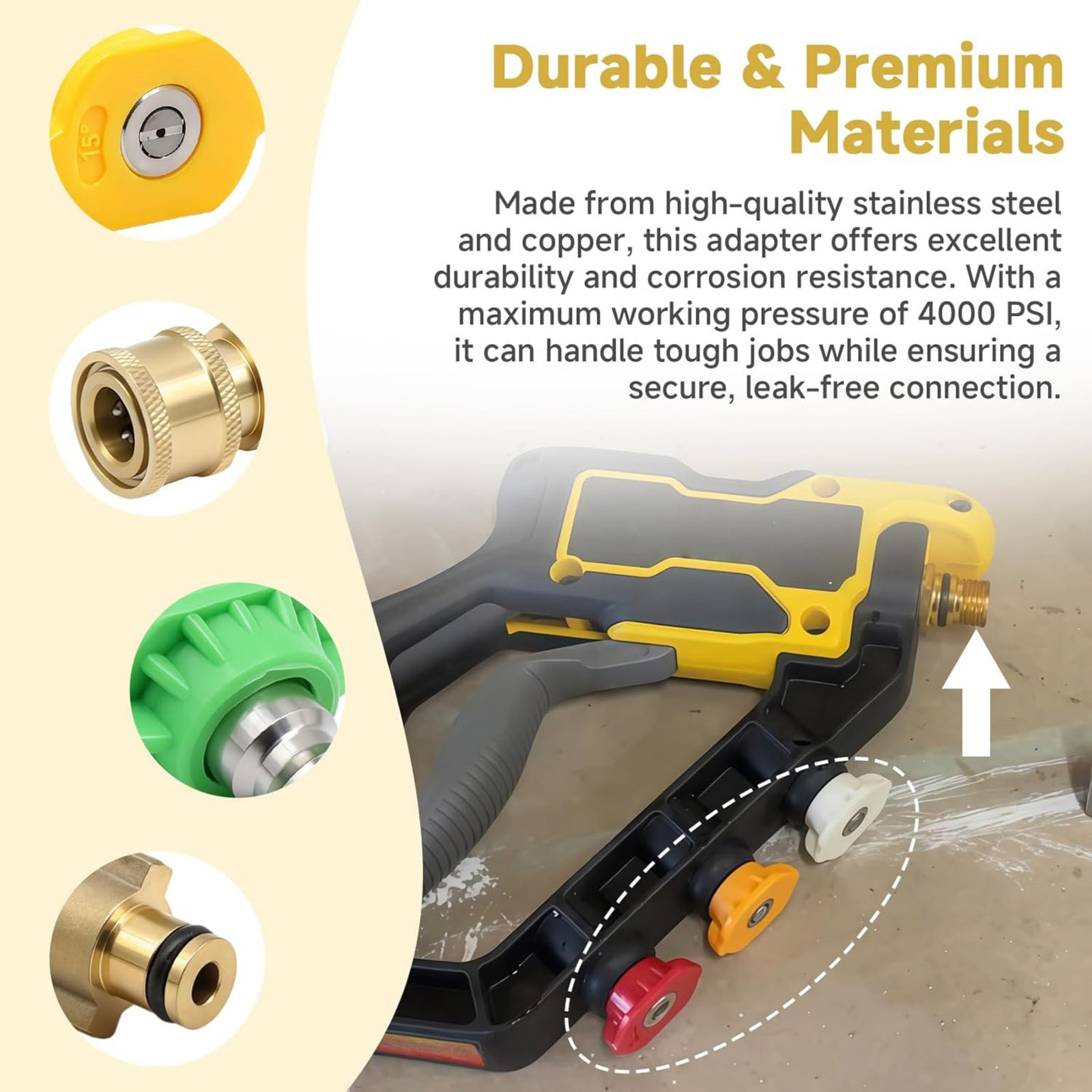 4. Heavy-Duty Metal Build (4000 PSI): Solid Metal Adapter Plus Stainless Steel And Brass Nozzles Ensure Durability, Rust Resistance, Tight Seals, And Stable High-Pressure Performance Up To 4000 PSI.