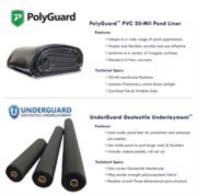 Sheets are produced as large as 40 feet in width. The use of a PVC liner prevents contaminants from entering groundwater sources or streams. In addition, it conserves potable water resources by preventing seepage loss. Narrower widths are also produced to offer applicators greater flexibility in positioning membrane.