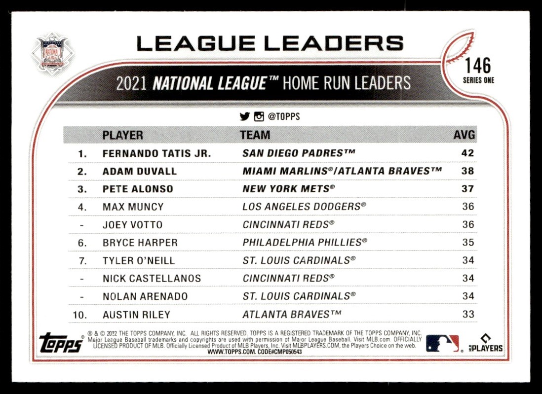 2022 Topps NL Homerun Leaders (Fernando Tatis Jr./Adam Duvall/Pete Alonso) San