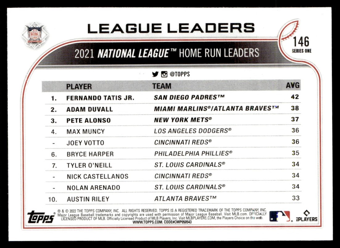 2022 Topps NL Homerun Leaders (Fernando Tatis Jr./Adam Duvall/Pete Alonso) San