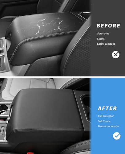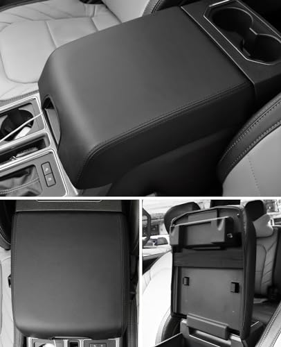 Center Console Cover for 2015 2016 2017 2018 2019 2020 Ford F150 Accessories Middle Lid Seat Armrest Cover Protector Elbow Cushion Pad Black Stitches