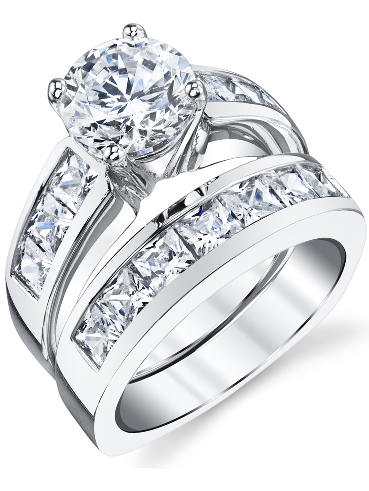 Women's Sterling Silver Bridal Set 2ct. Engagement Wedding Ring Round Princess-Cut Cubic Zirconia