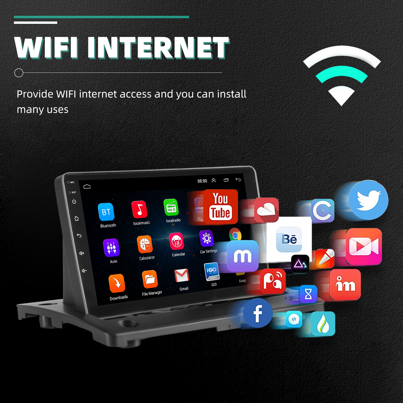 CANBUS Included: CANBUS This WIFI Car Radio with Navi can help realize real-time information synchronization, support parking sensors, reversing signal, climate display, vehicle information and so on, which makes the car control more intelligent and accurate.