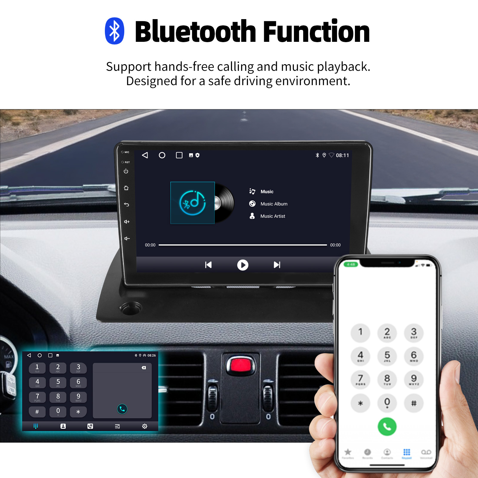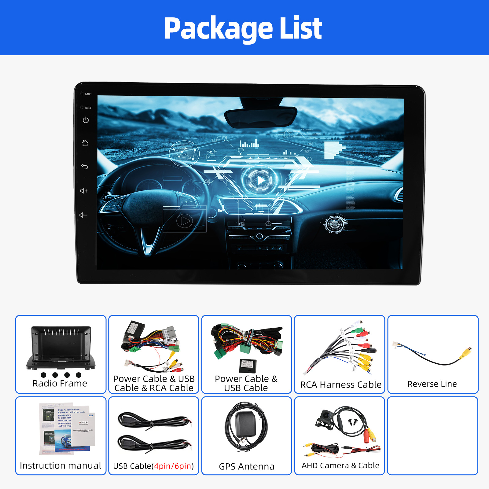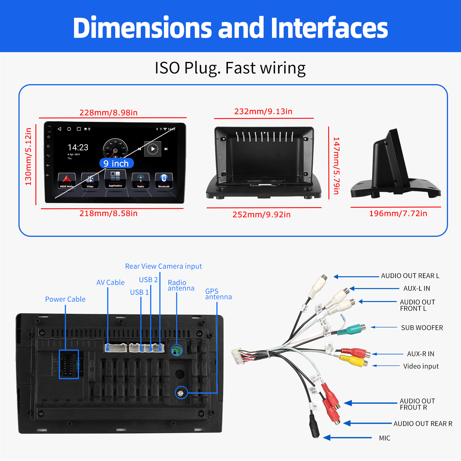 RDS/FM Radio & Bluetooth & ASP Sound Setting: Supports Bluetooth 4.1, with built-in microphone so you can make hands-free calls while driving. Support access to phone book, music playback interface, etc. RDS supported. You can save 18 FM radio stations. Built-in ASP chip. Supports 32-band EQ setting, which can be adjusted according to your personal preference. Which is very similar to your original sound. 4 x 45W amplifier, surround sound and subwoofer output