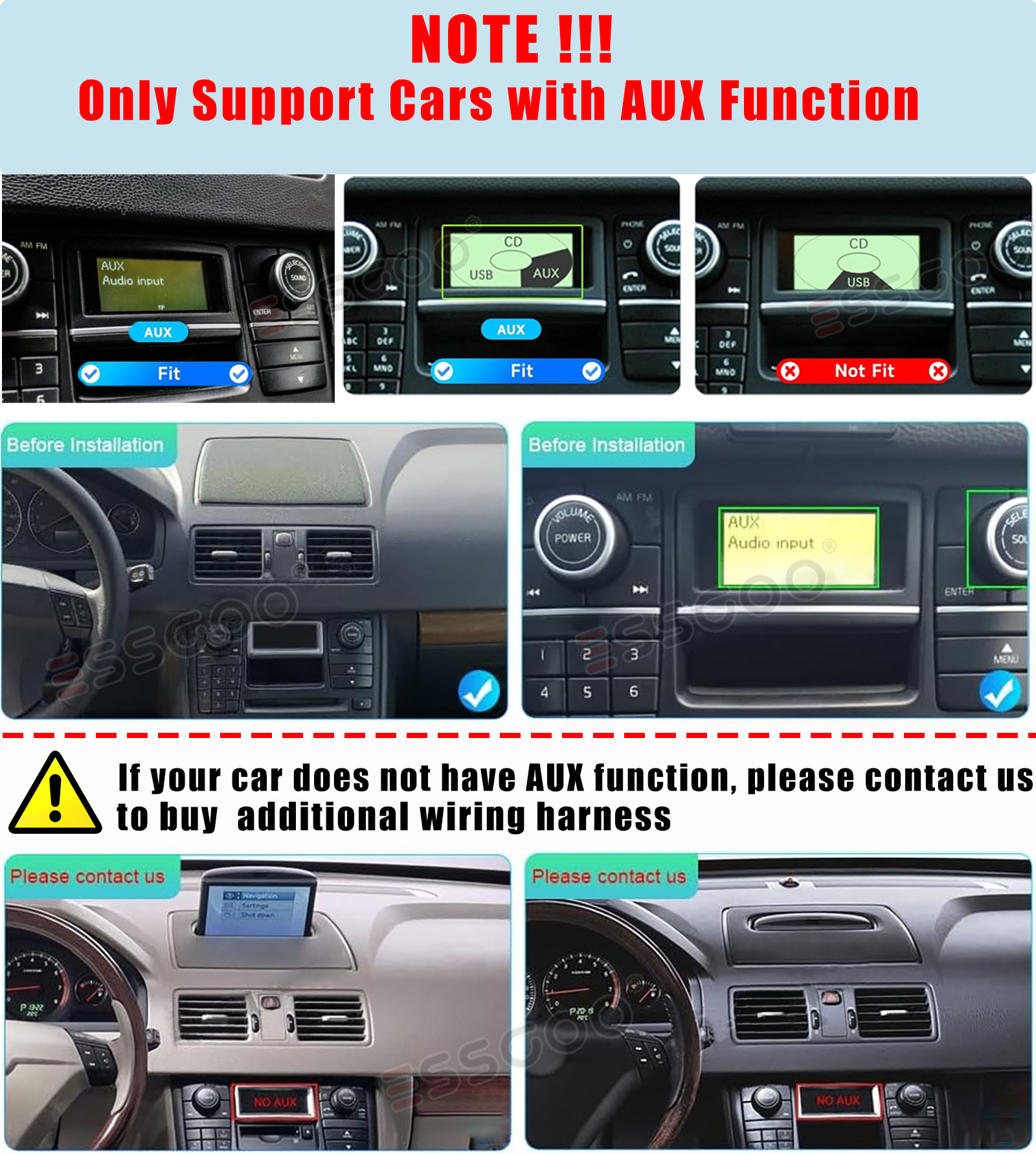 Note!!!!! Only Compatible for Original Cars with AUX Function