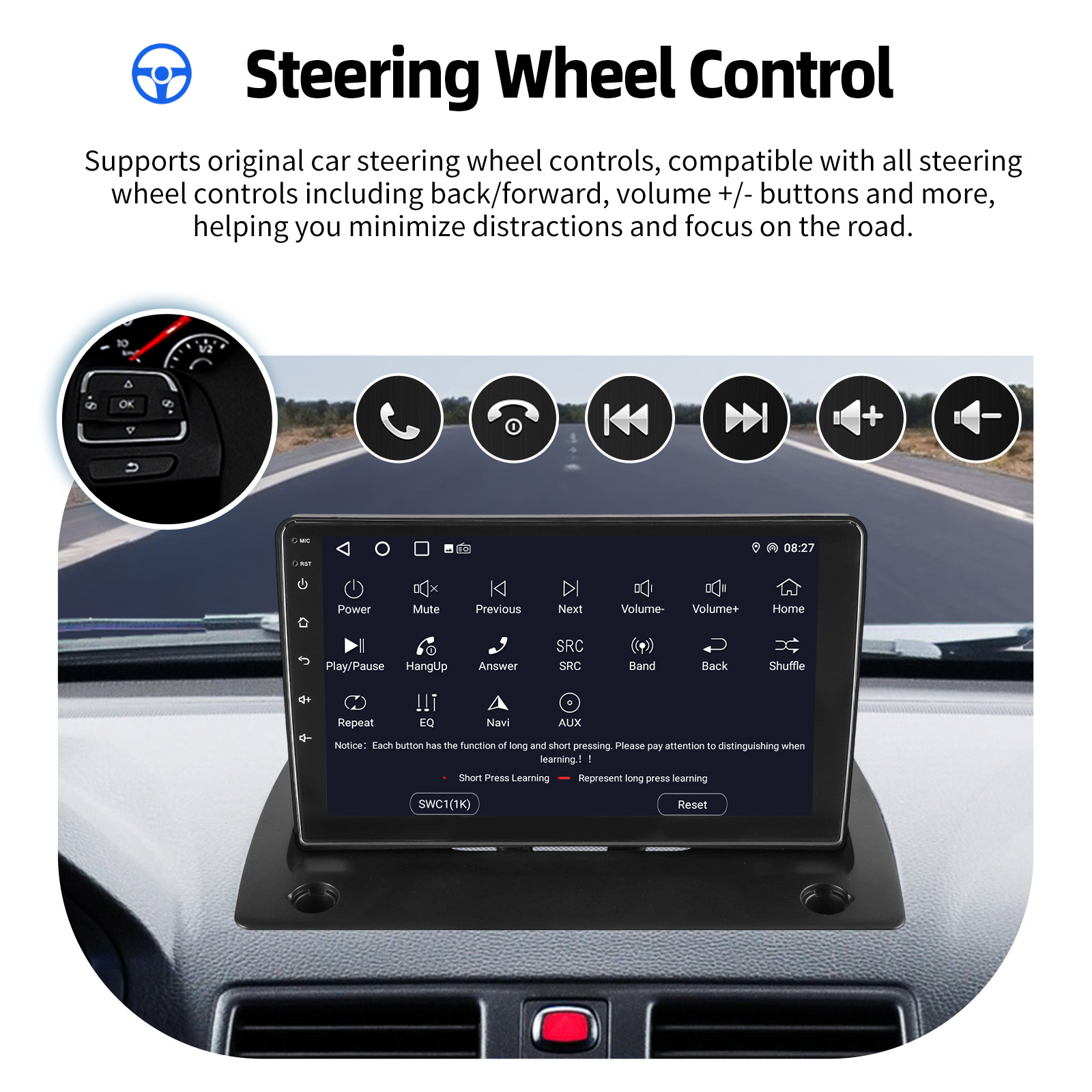 AHD Rear View Camera Input & Steering Wheel Control: After connecting to the rear view camera. The radio automatically displays the reversing image as soon as you engage reverse gear. Make your daily reversing safer. Support AHD camera. Support original car steering wheel control to make driving more convenient and safer