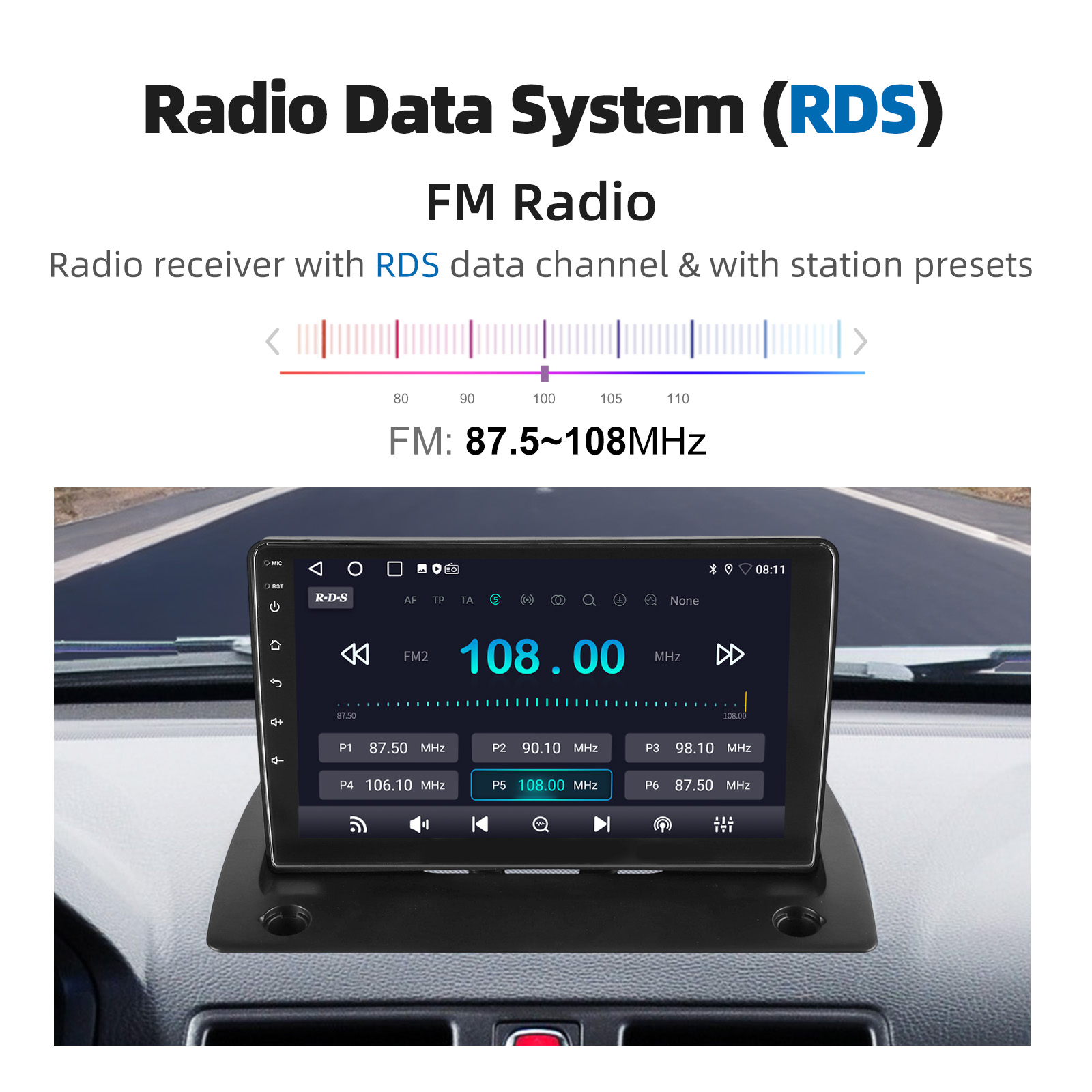 Radio Data System (RDS): RT, AF, TA provides all the FM channel information you need.