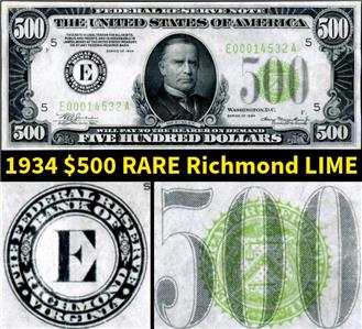 Rare Richmond district with the rarer and highly wanted lime seal. These statistical rarities are a great choice to buy and put away. Lime seal varieties are highly wanted and much rarer and much more beautiful than the more common dark green seal variety. Demand for $500's is crazy and the available supply is drying up. This example did not circulate long and the evidence is minimal(see enlarged scans). Paper is crisp and bright with bold inking. Sharp edges and nice square corners. Great opportunity here! An excellent addition to your collection.