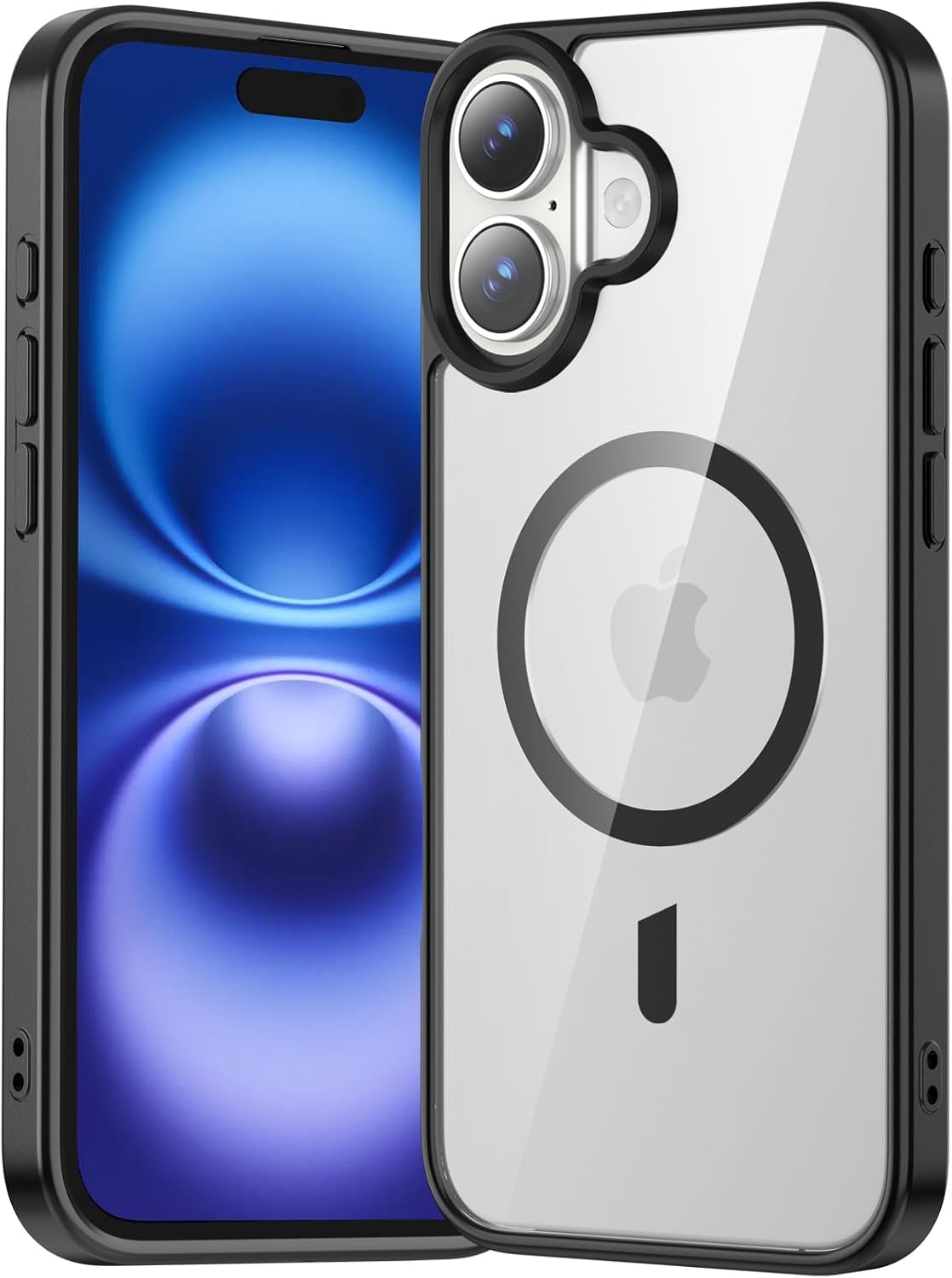 Temdan for iPhone 16 Sleeve Case, [Compatible with Magsafe][Anti-Yellowing][Military-Grade Protection] Shockproof Slim Phone Sleeve for iPhone 16-Clear Black
