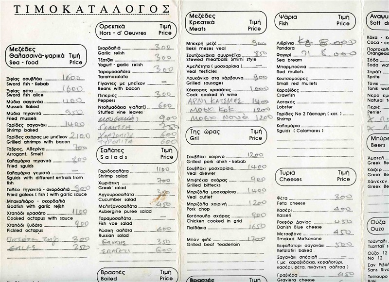 Menu Athens Greece Tau Omicron Pi Iota Kappa Eta Gamma Epsilon Upsilon Sigma Eta