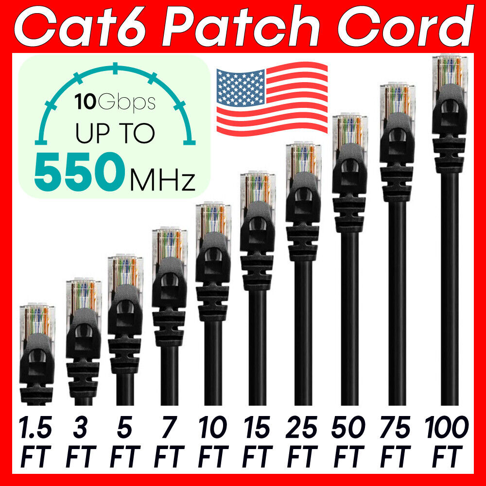 Cat6 Ethernet Cable 10Gbps RJ45 LAN 550 MHz UTP Network Patch Cable - Black
