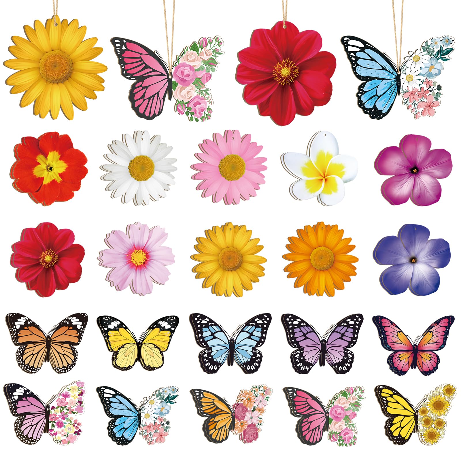 Exquisite Crafts: Great for spring signs, gift tags, coasters, photography props, and other art and craft projects. These Flower Butterfly hanging ornaments are ideal for spring, summer, farmhouse, weddings, birthdays, New Year, etc