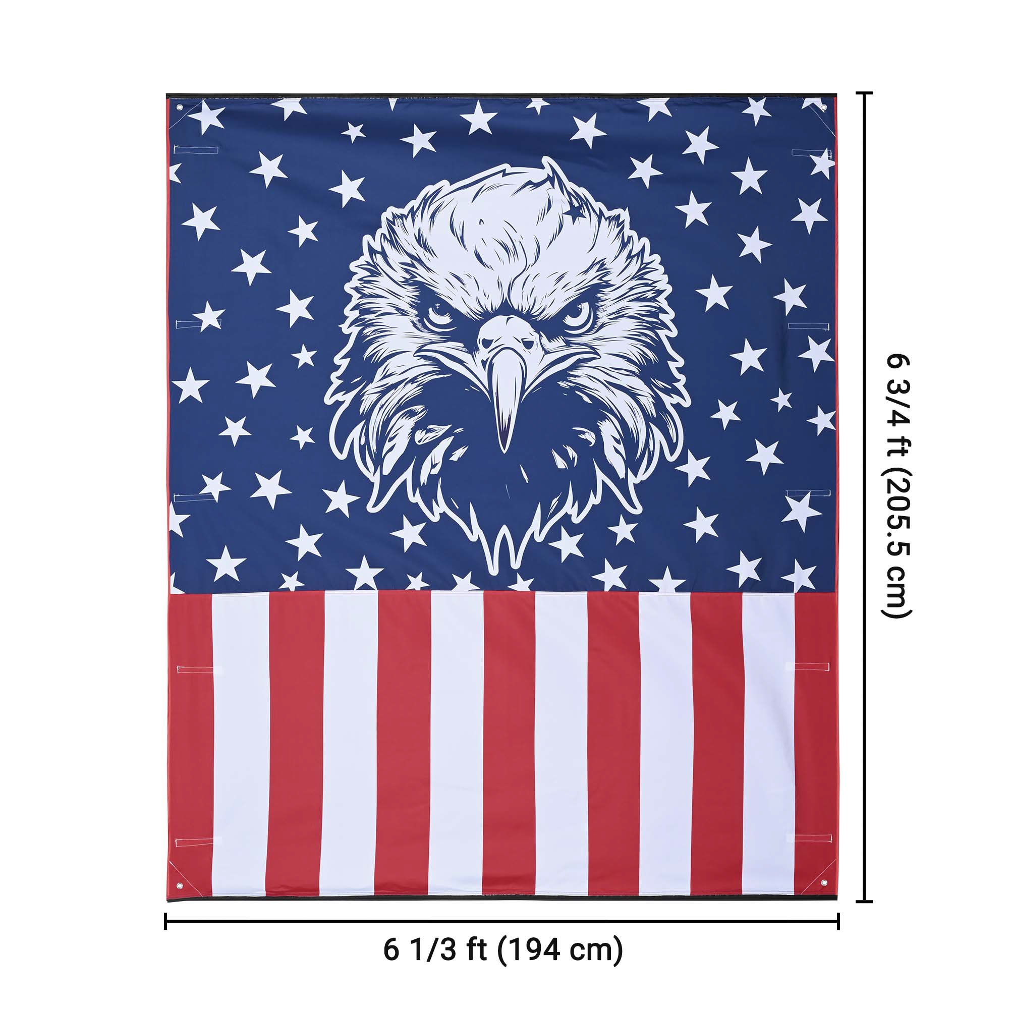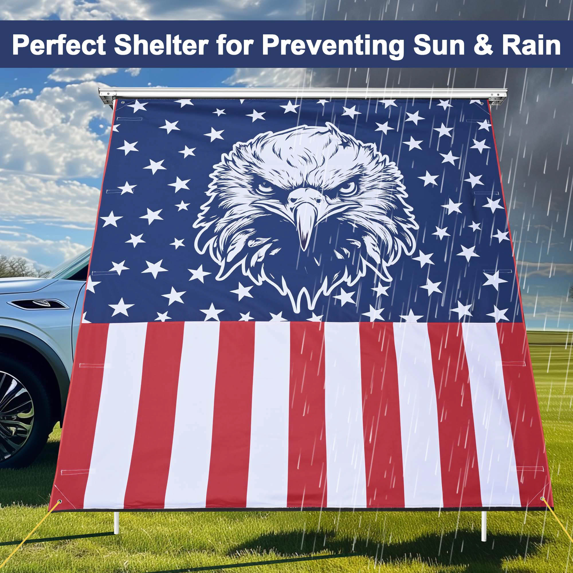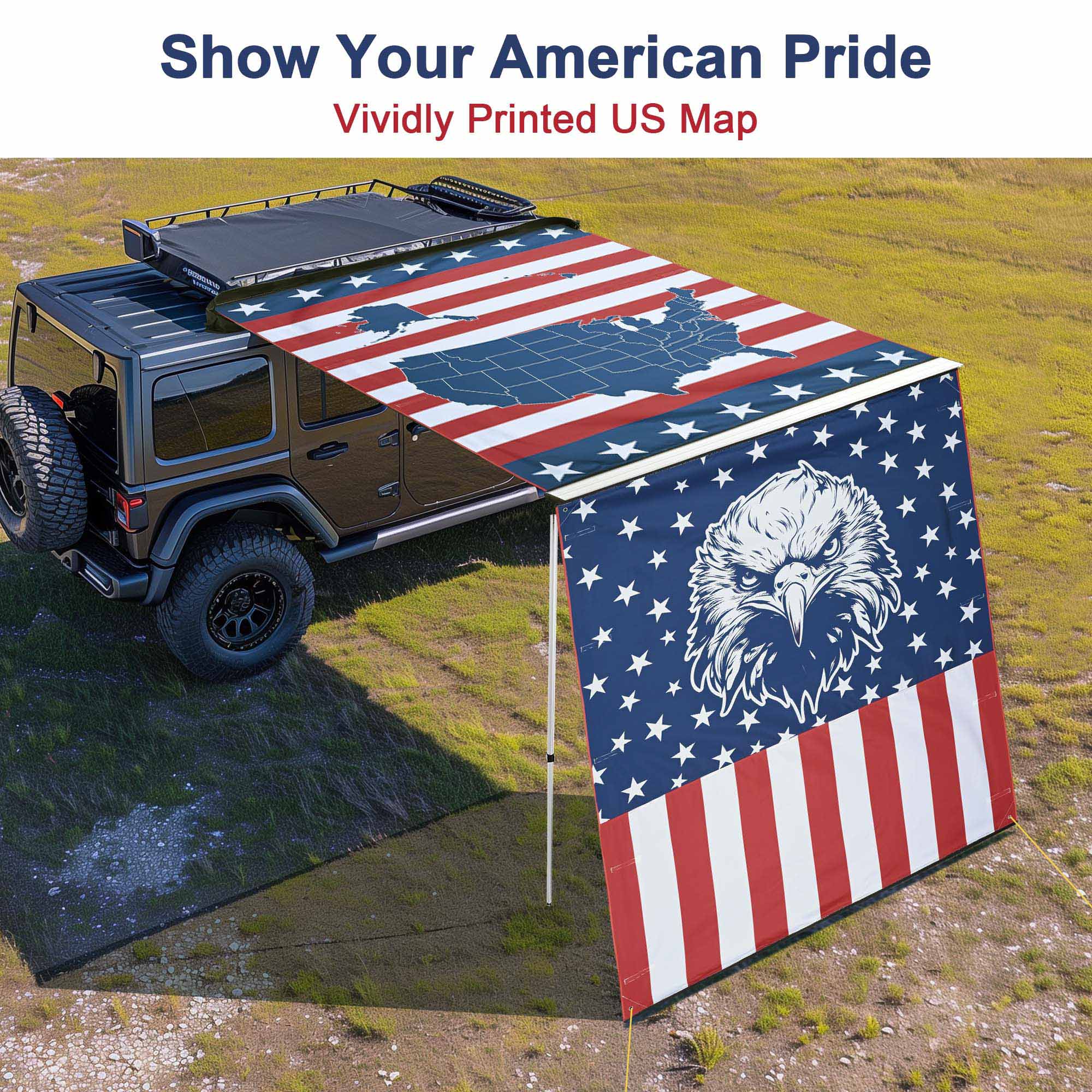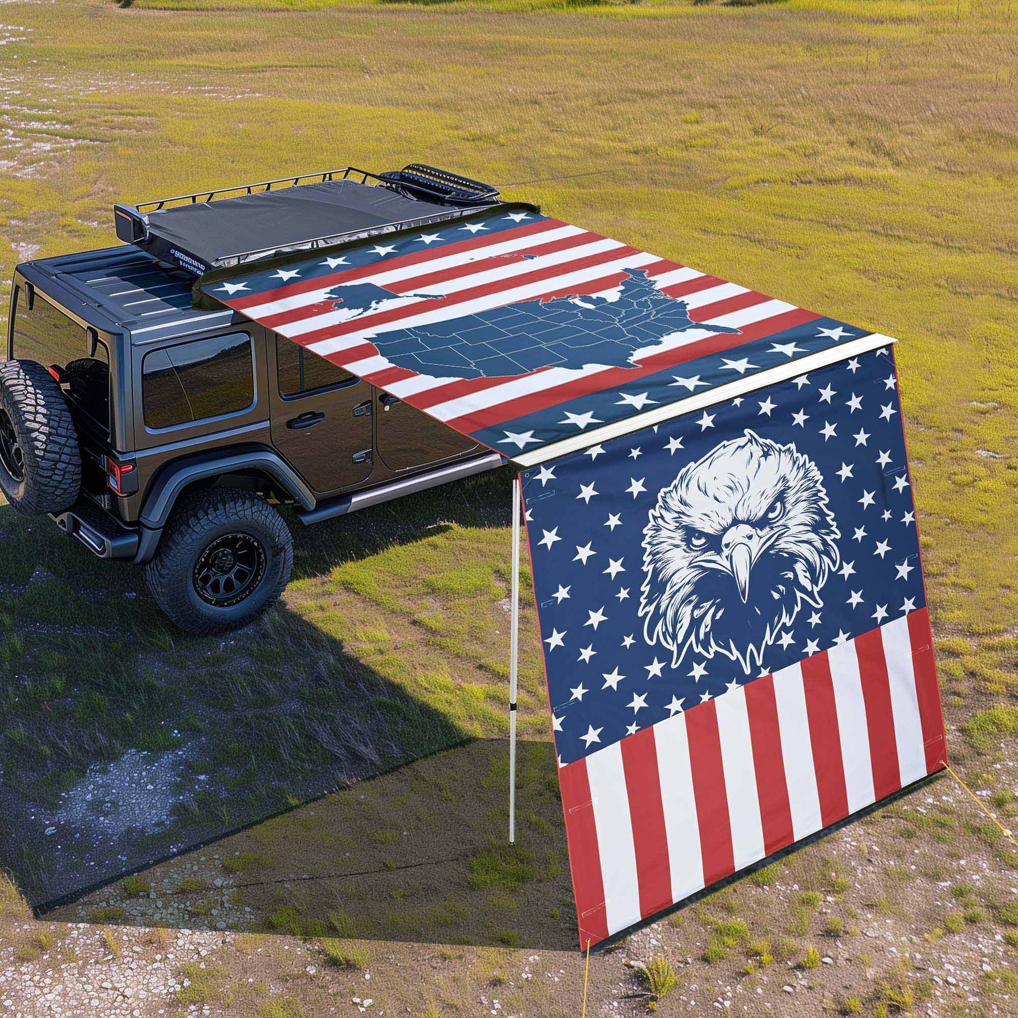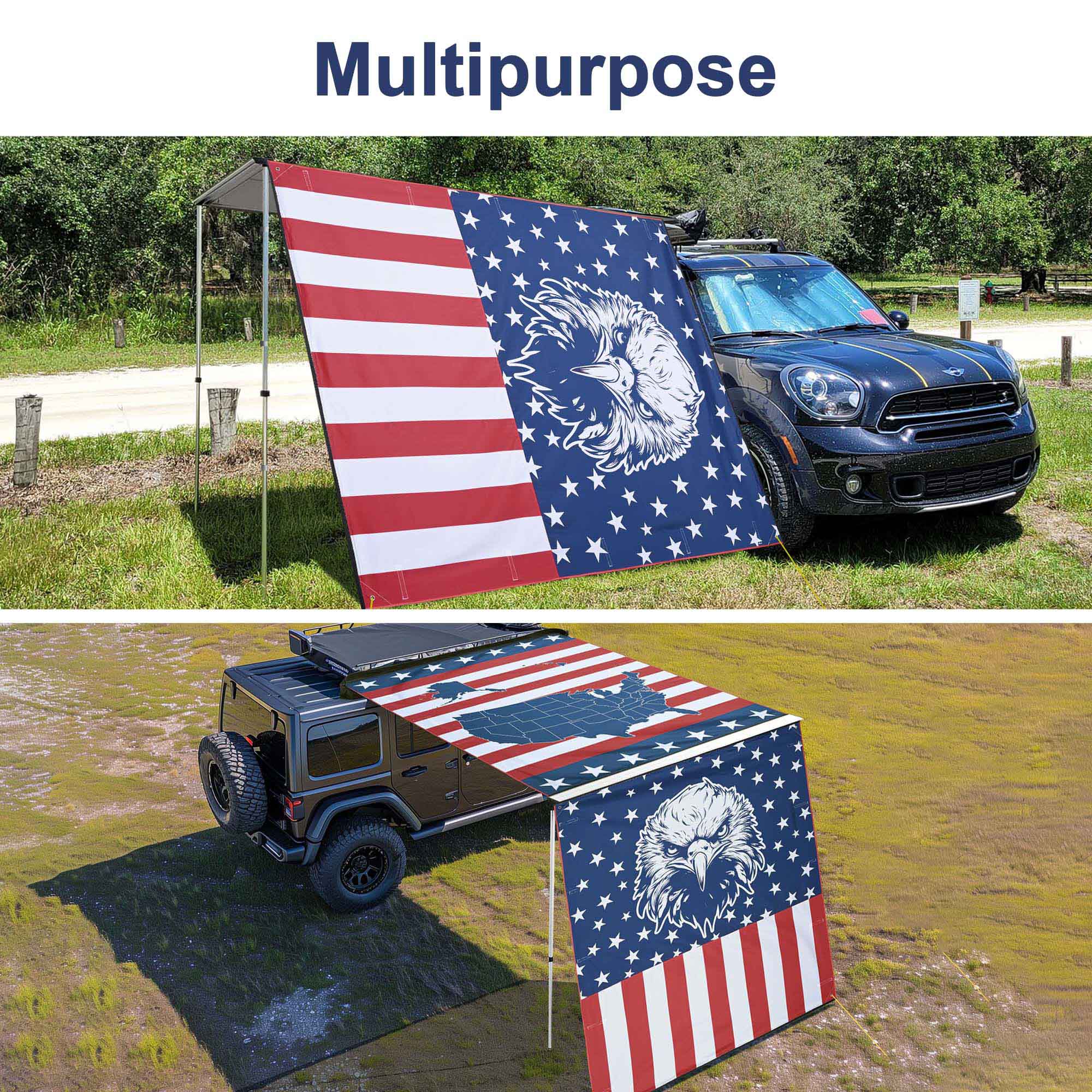 - Show Your American Pride - 6 3/4 x 6 1/3 ft Extension Canopy for Car Side Awning features a vivid bald eagle with patriotic stars and stripes on the background, perfect decoration to demonstrate your patriotism for this country and boost the festive atmosphere for Independence Day, Memorial Day, Veterans Day, Patriots' Day, Emancipation Day