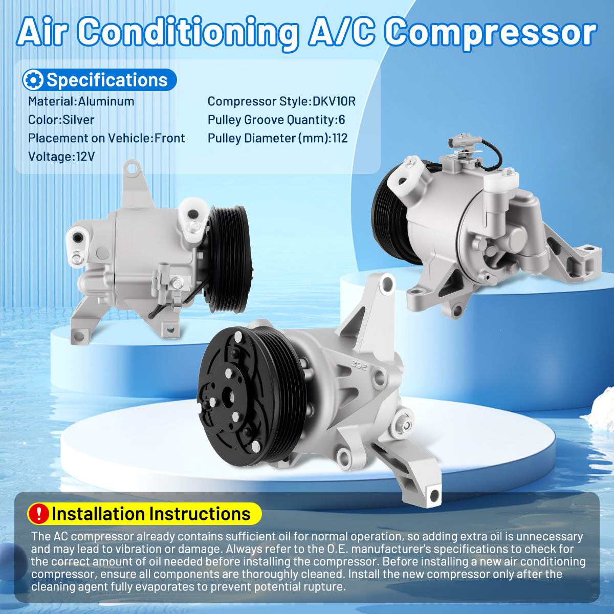 It is necessary to add appropriate amount of oil and refrigerant to the ac compressor before use.