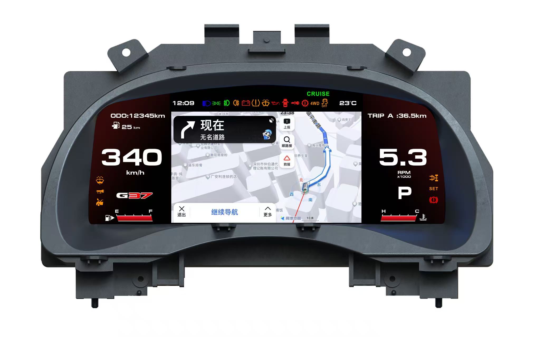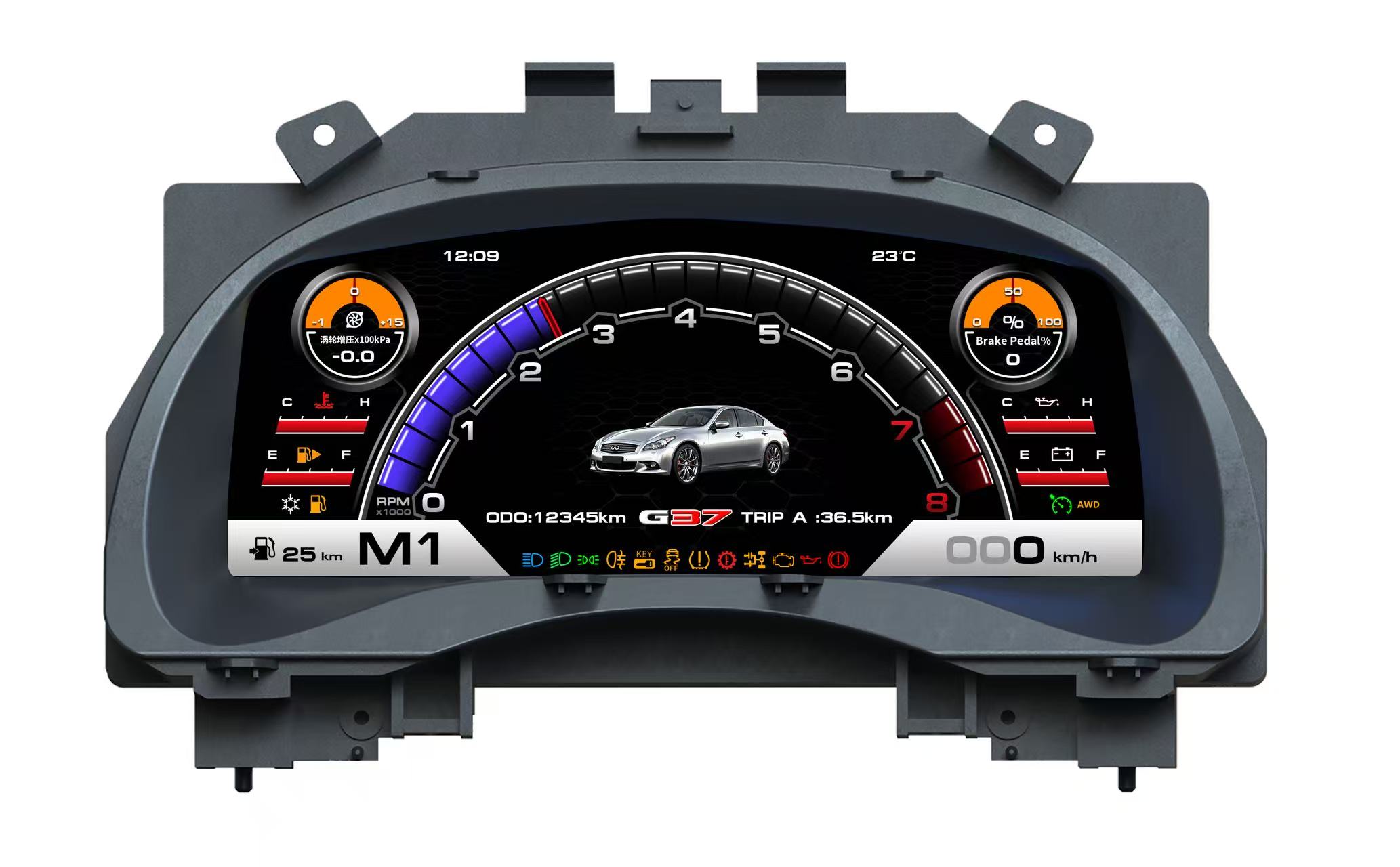 For Infiniti G25 G35 G37 G37S Q60 2007-2013 Car LCD Dashboard Digital Cluster Function introduction Retain all original vehicle information and retain some of the original vehicle functions 1920*720 HD QLED screen, max 60fps Supportoriginal Miles/KM/Tire pressure/gas mileage/power consumption Support steering wheel buttons control Display the car’s speed, fault lights, indicator lights, ACC, TMC, Gas, Radio, etc.… Linux operation system (stable and can be used for many years) Working temperature: -40℃~+80℃
