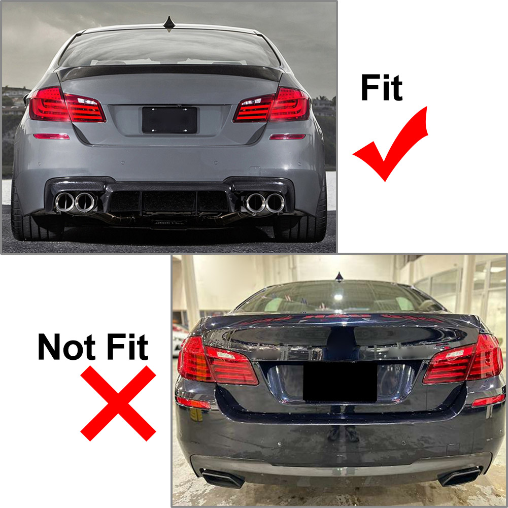 Rear Bumper Diffuser Quad Exhausts For BMW F10 M5 2011-2016 Features: 1. Scratch resistance, heat resistant, water proof and dust proof. 2. Beautiful appearance design, make the car look cool and new. 3. Waterproof, anti-corrosion, abrasion resistance, high temperature resistance. 4. High quality UV-protected clear coating, surface is smooth and shiny, enhance the appearance of the vehicle. 5. Impresses with its fitting accuracy and emphasizes the sporty lines of your car, stylish design gives a customized look. Specification: Condition: 100% Brand New Material: ABS Color: Bright Black, Carbon Fiber Fitment Type: Direct Replacement Placement on Vehicle: Rear Fitment: Fit For BMW F10 M5 with M Sport Performace Rear Bumper ONLY 2011-2016 Only Fits For Model With M Sport Bumper! Won't Fit For Regular Rear Bumper. Please kindly check our item description, photos and sizes, make sure this item fit for your car before place an order. Packing Included: 2 Pcs/Set Rear Bumper Diffuser Notes: 1. All dimensions are measured by hand, there may be small deviations. 2. Due to technology, the carbon fiber texture may be slightly deformation. 3. No installation instruction included, professional installation is highly recommended. 4. The real color of the item may be slightly different from the pictures shown on website caused by many factors such as brightness of your monitor and light brightness.
