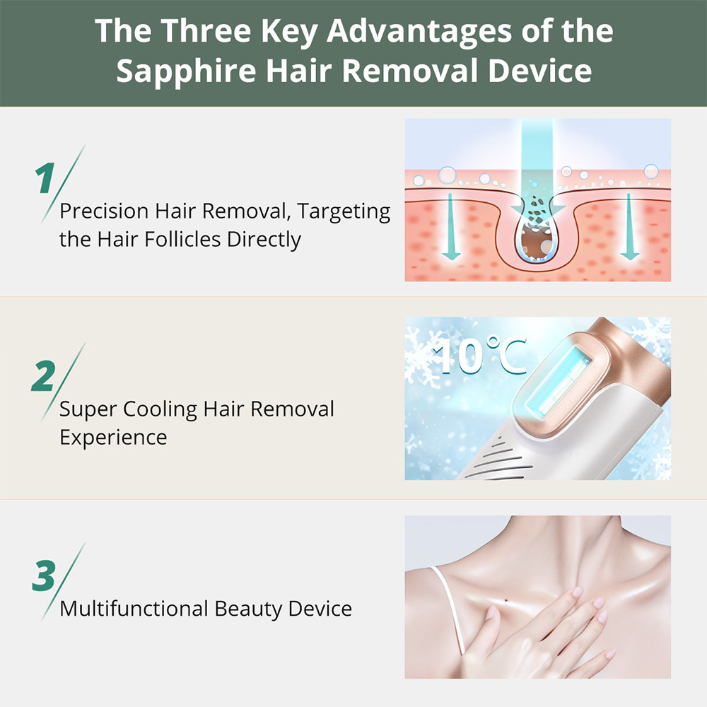 💖Sapphire Ice-Cooling Painless Hair Removal: Experience the comfort of Our's advanced 40°F sapphire Ice-Cooling technology. Instant cooling in just 1s, effectively maintaining a soothing skin temperature of 40-50°F for over 35+ mins. This helps prevent burns and irritation, ensuring a nearly painless experience, even in sensitive areas like the armpits and face