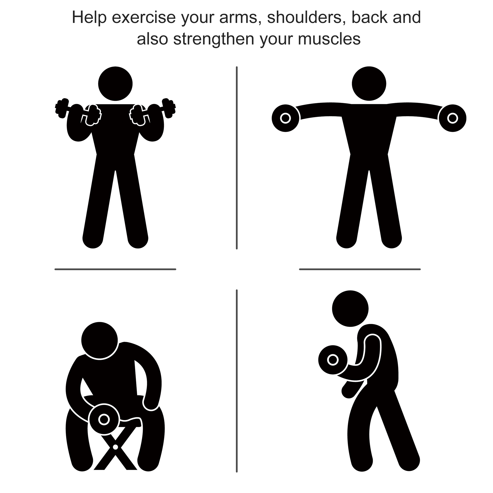 Dumbbells Set of Two: This dumbbells set can help increase your strength, giving you more muscle mass and benefiting your cardiorespiratory fitness and flexibility.