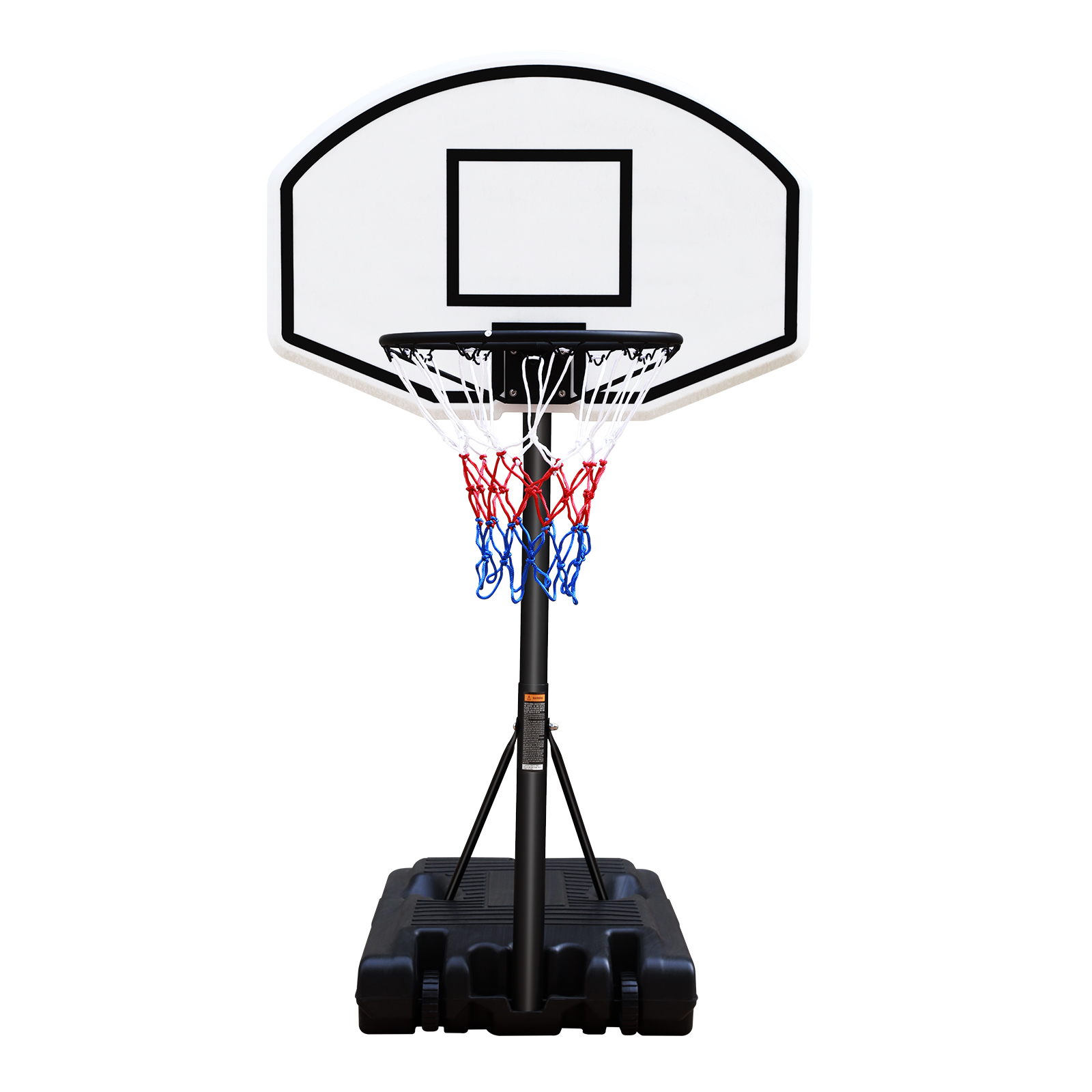 This portable poolside basketball system have an Action Grip height adjustment mechanism that adjusts from 3 to 4 feet high. The backboard size is 35" * 24'', it can meet our needs by the swimming pool.