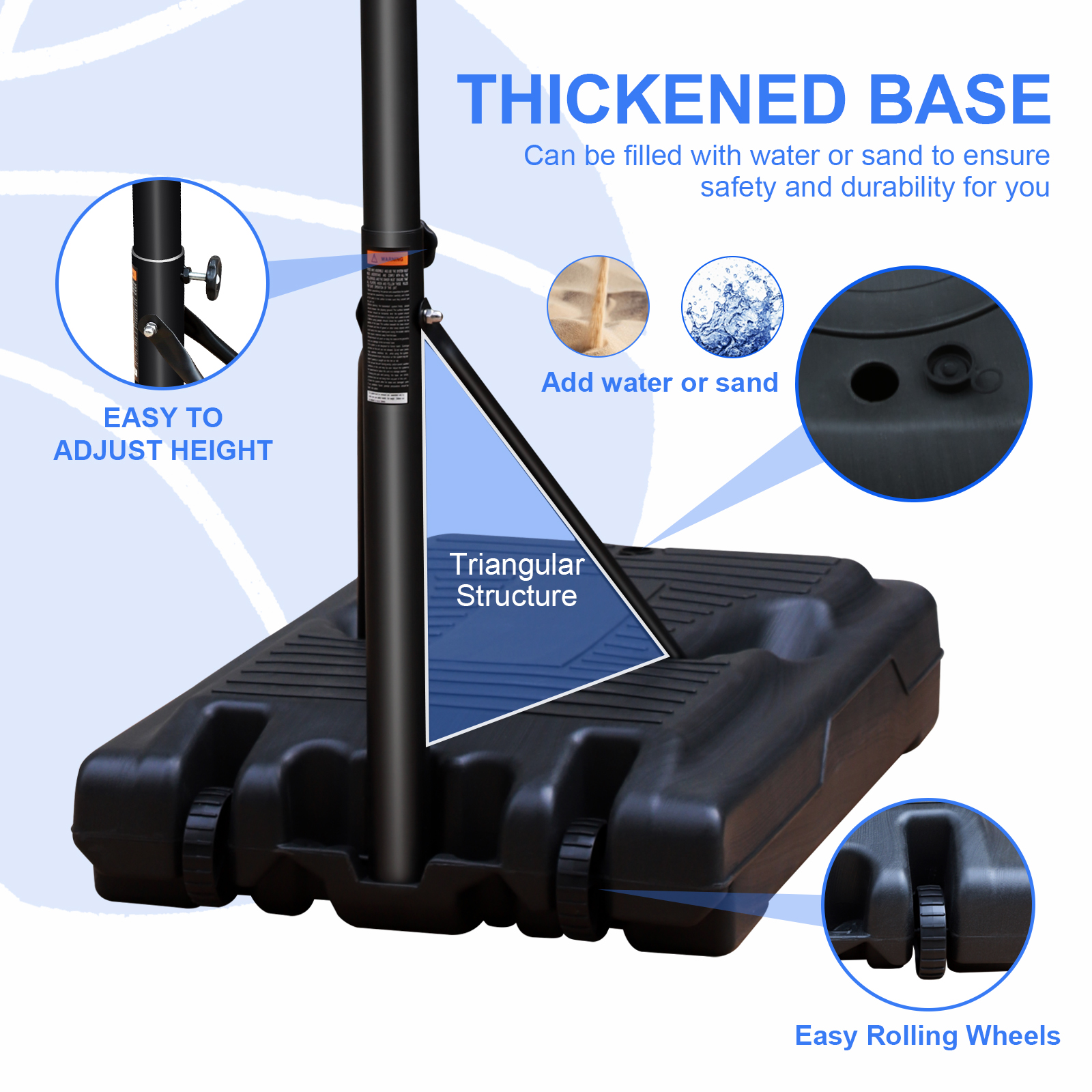 This is a perfect outdoor game that you can put the basketball stand in the poolside. Of course, don't worry, the base size is 35" * 24" * 6" , the base can be filled with 60lbs water or 75lbs sand to ensure good stability and safety for your every shot.