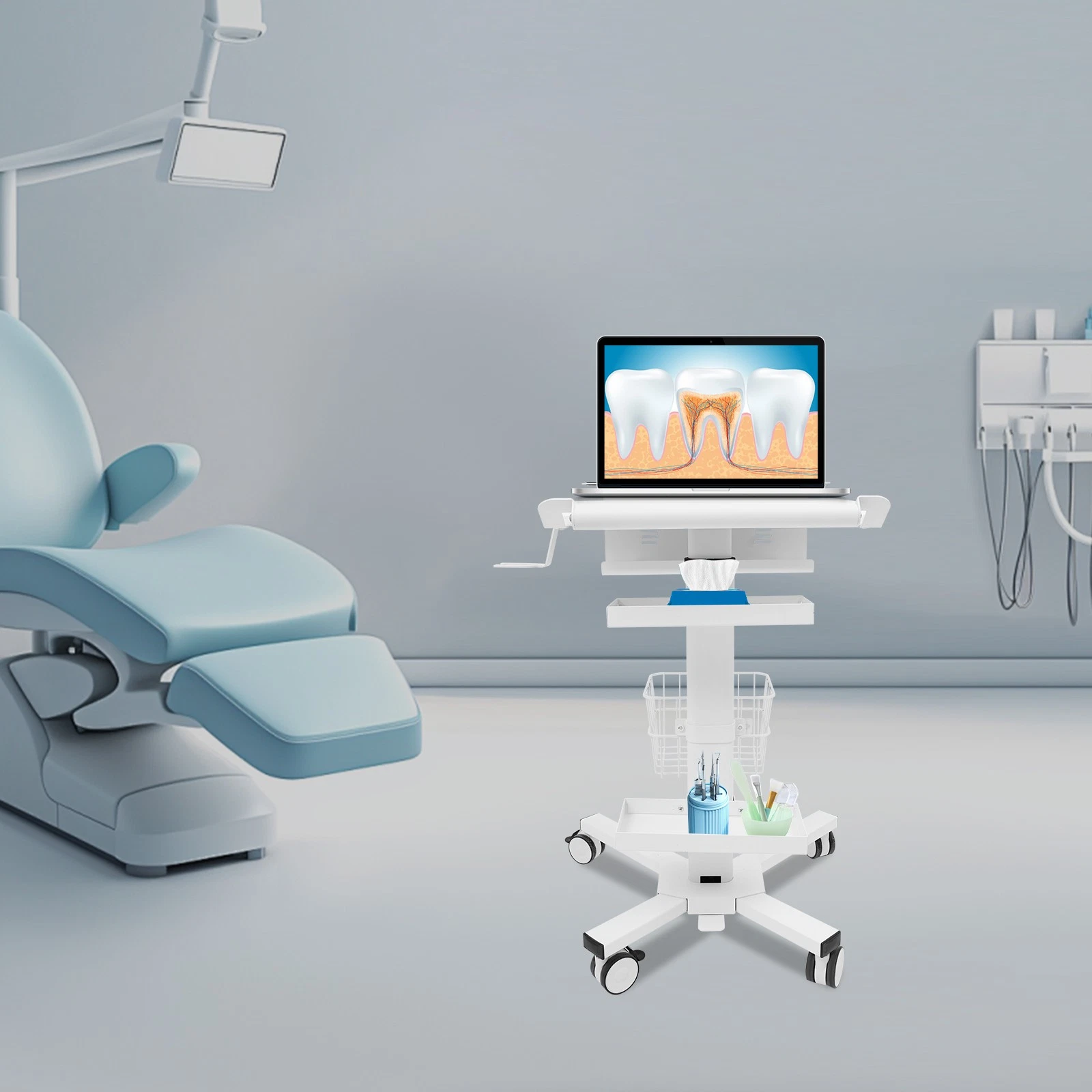 This medical cart is designed specifically for medical environments, aiming to improve the work efficiency of medical staff. Its main body is made of sturdy materials, ensuring durability and stability. The top platform is spacious and flat, which can stably place laptops or other medical equipment, making it convenient for doctors and nurses to operate and record.