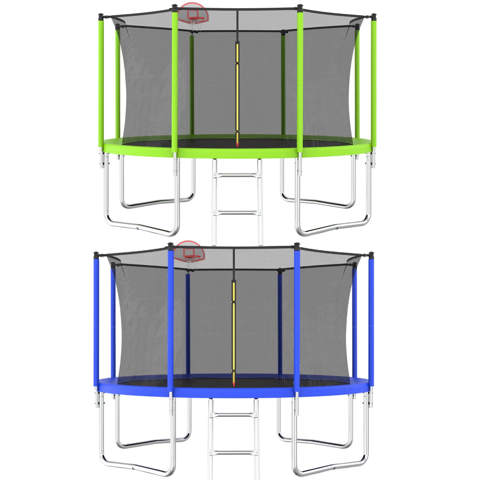 12ft Trampoline with Basketball Hoop&Ladder Adults Kids Recreational Trampolines