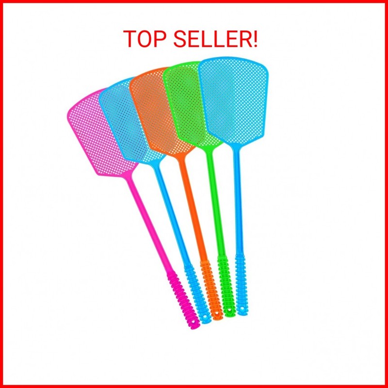 Fly Swatter,5 Pack Plastic Heavy Duty Manual Fly Killer, Long Handle Flyswatter, Large Bug Swatters that Work for Indoor and Outdoor
