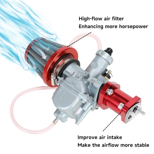 VM22 26mm Performance Carburetor with 38mm Air Filter Intake Manifold Stage 1 Kit Red for Predator 212cc 196cc Coleman CT200U BT200X Mini Bike KT196 Go Kart GX160 GX200 6.5hp Clone Engine