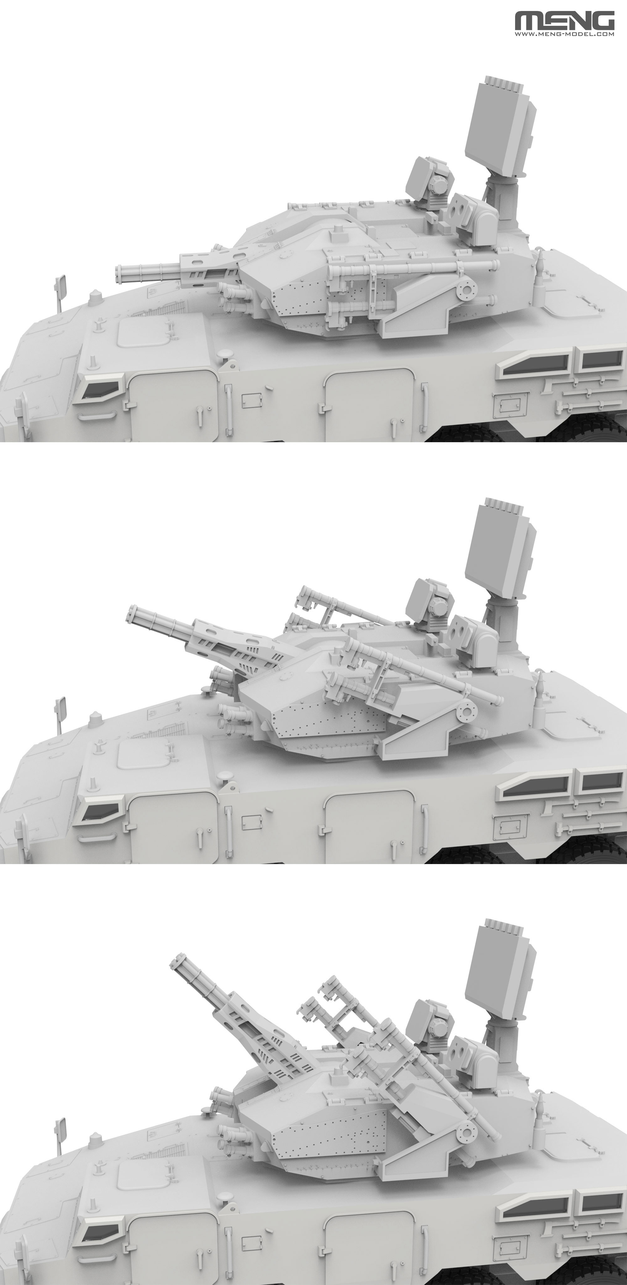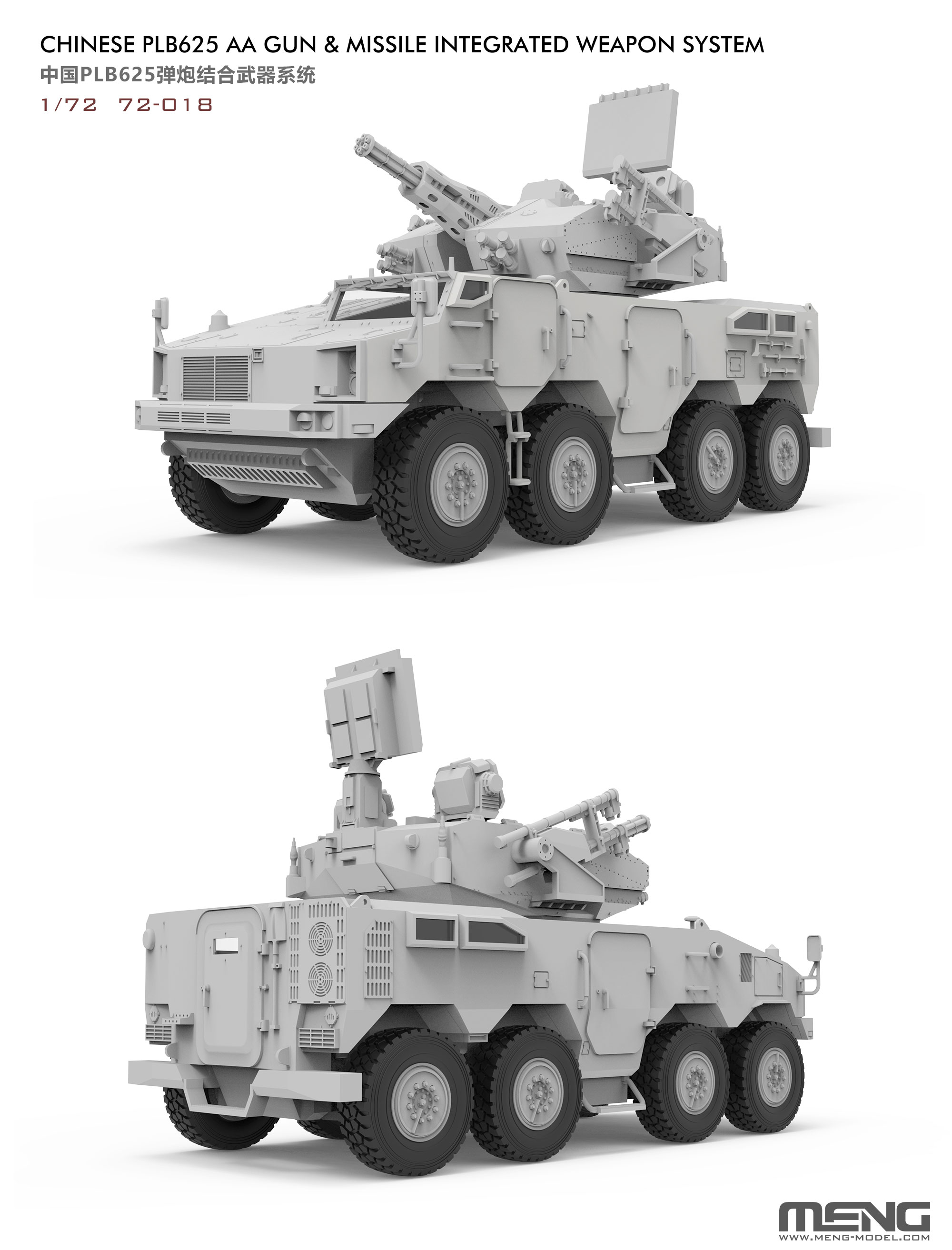 MENG's 1/72 series products ushered in the first wheeled armored combat vehicle, 72-018 China PLB625 ammunition and gun combined with weapon system assembly model. After completion, it is about 96mm long, 47mm wide and 62mm high (radar is erected). The kit continues the characteristics of this series of simple assembly, making the assembly process smoother, significantly optimizing the experience and reducing the difficulty of getting started. At the same time, the kit also comes with exquisite water stickers