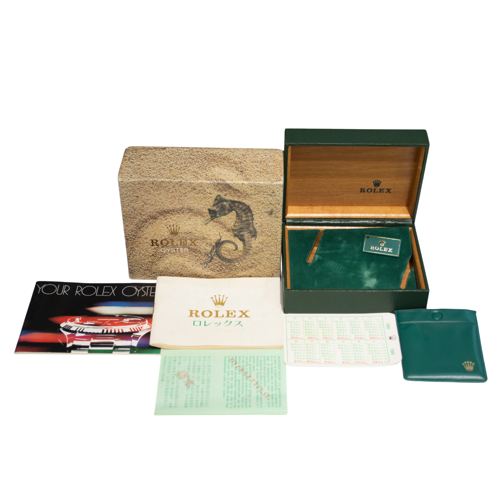 condition details:Plastic crystal: There are some minor scratches, but it is in good condition. Dial and hands: There is some age-related tarnishing on the hands and indices, and sunburn on the entire dial. Bezel: There are some small dents scattered around, but it is in generally good condition considering its age. Case: There are some dents on the sides that have been lightened by polishing, but it is in generally good condition considering its age. Bracelet: There are some dents and scratches throughout that are commensurate with its age, but there is no fatal damage. *Polished by our company. |
