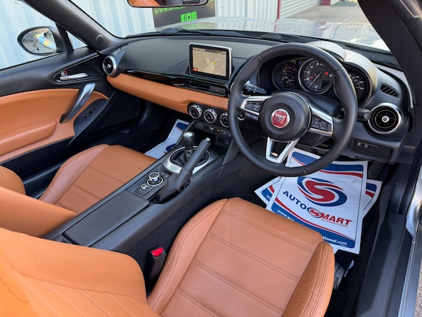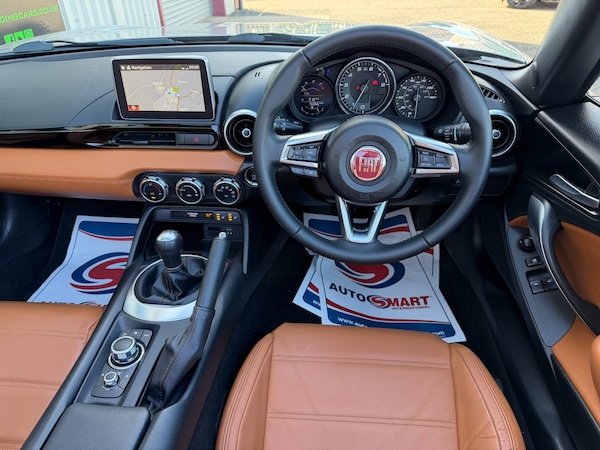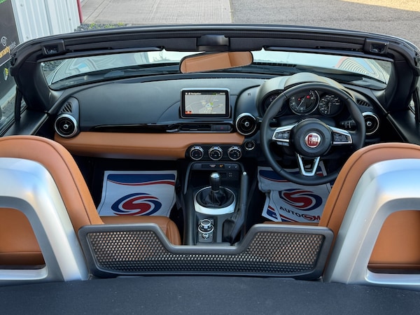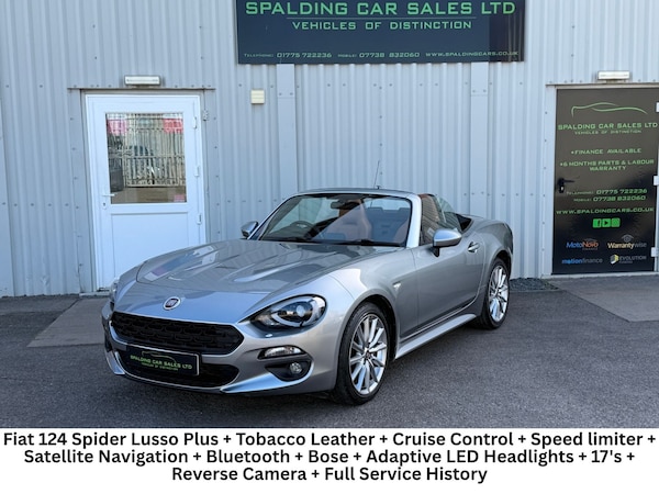 We are delighted to offer this 1 Owner from new Fiat 124 Spider Lusso Plus Multiair finished in Argento Grey Metallic with Contrasting Black mohair Roof with Heated Glass Rear Window. The specification of this superb One Owner Fiat 124 Spider Lusso Plus is as follows - Tobacco Leather Sports Seats - Height Adjustable Drivers Seat - Variable Heated Front Seats - Adjustable Steering Column - Air Con - Automatic Climate Control - Electric Front Windows - Electrically Adjustable & Heated Mirrors - Cruise Control with Speed Limiter - Trip Computer - 7 inch Touchscreen Satellite Navigation with 3D Mapping - 7 inch Touchscreen RDS DAB Digital Stereo & CD Player - Bluetooth Music Streaming - USB - Wifi Connectivity - Hybrid Bose 281 Watt 9 Speaker Sound System including Headrest Speakers & Subwoofer - Bluetooth Phone Interface - Auto Lights & Auto Wipers - Leather Multi Function Steering Wheel - Piano Black Dash Accents - Keyless Entry & Keyless Go - Fiat 124 Spider Lusso Plus Bodystyling - Premium Silver Windscreen Frame - 17 inch 12 Spoke Alloy Wheels Finished Silver - Adaptive LED Headlights with LED Signature Daytime Running Lights - Headlight Washers - Front Fog Lights - Rear Parking Sensors, Full Colour Reverse Camera - Premium Silver Roll Bar Covers, 1 Owner From New, 2 Keys, Full Service History, Serviced at 6575 / 12375 / 14307 & 15027 Miles, Maintained Regardless of Cost, 2 Keys, 12M MOT, 6M Comprehensive Nationwide Parts & Labour WarrantyViewing By Appointment, Finance From 8.9% APR, Multi Point Inspected, All Cars Fully Detailed
