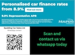 Spalding Car Sales Ltd hold a full FCA Financial Conduct Authority Credit Licence allowing customers to benefit from very competitive low rates of finance from 8.9% APR (subject to status) & make no payments for 60 days on Hire Purchase (HP), to make purchasing your new car hassle free. We are also able to offer competitive finance deals for customers with a low credit score, and those unable to obtain finance elsewhere through our extensive panel of lenders.