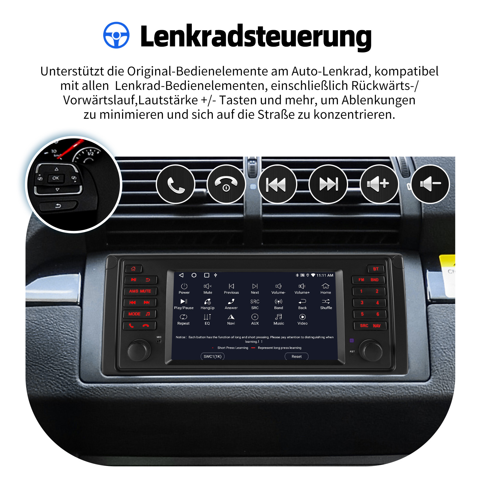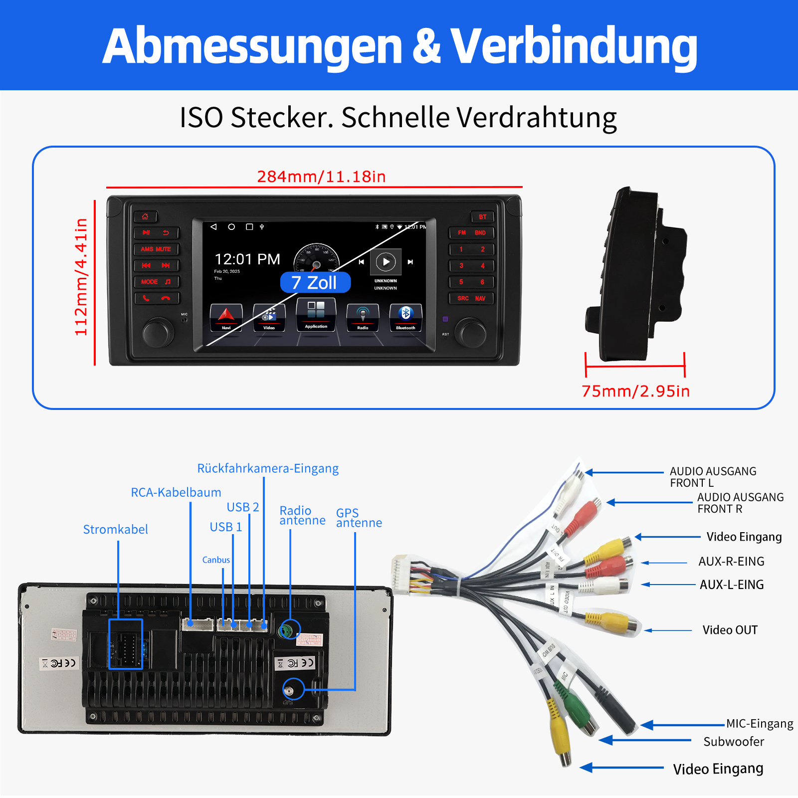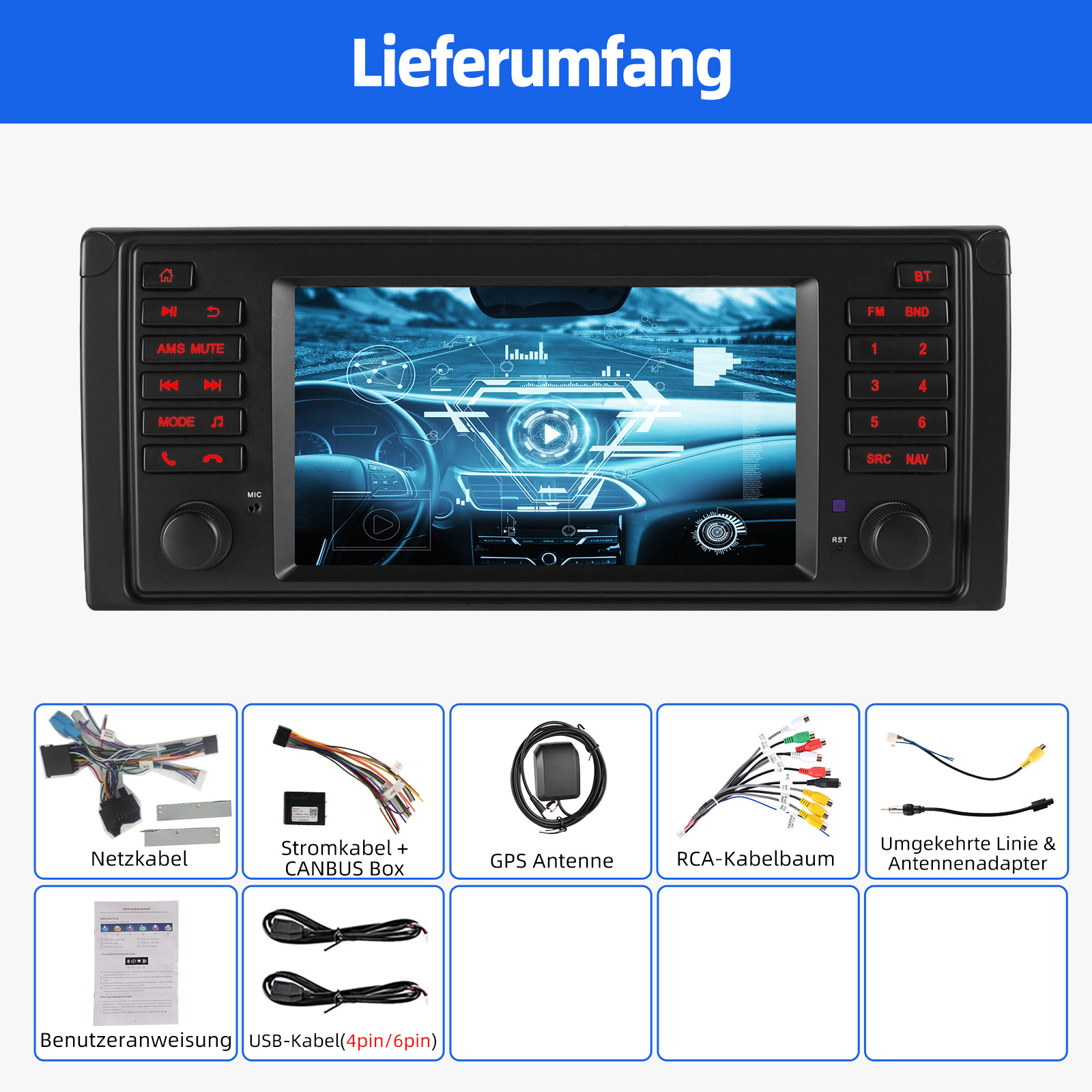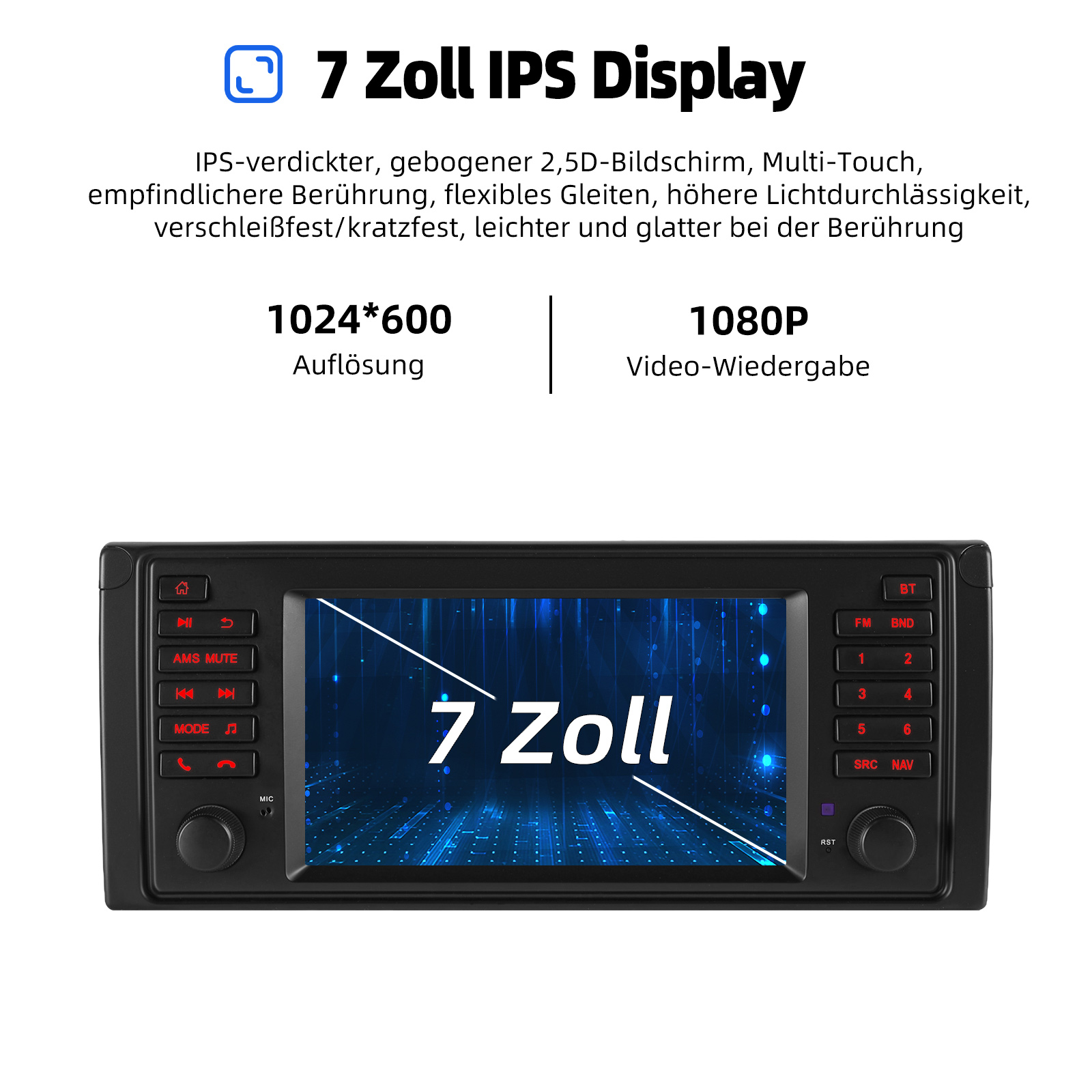 7 Zoll Android 14 Autoradio Für BMW 5er E39 M5 1996-2003: Das Android Autoradio mit 7" 1024* 600 HD IPS kapazitivem Touchscreen, 2GB RAM und 64GB ROM ermöglicht das Herunterladen Ihrer Lieblings-Apps und -Videos, damit das Autofahren nicht mehr langweilig wird. Kein zusätzlicher Rahmen, kein Kabelwechsel, Plug and Play.
