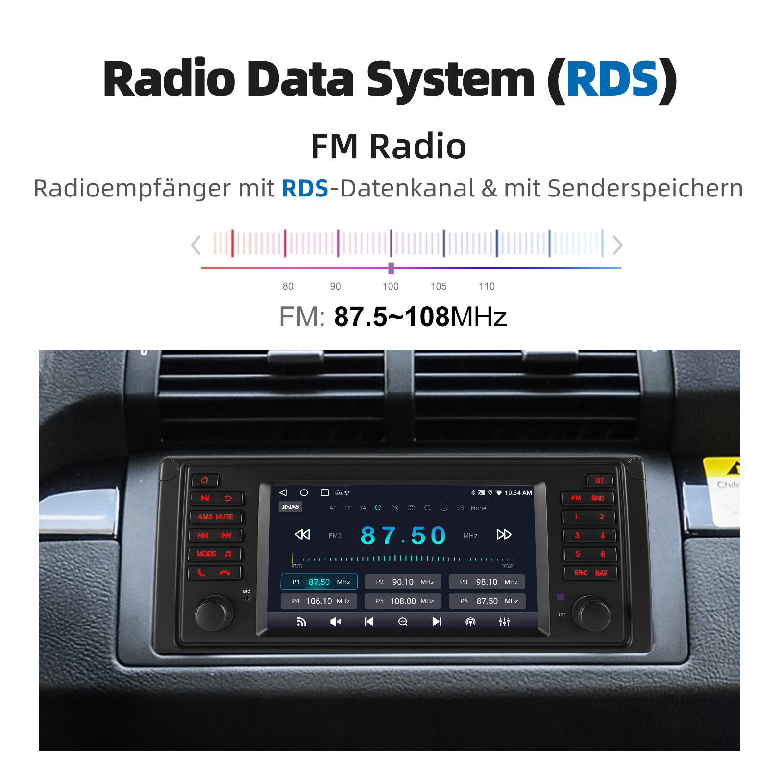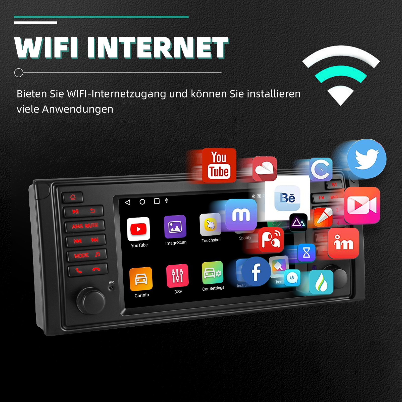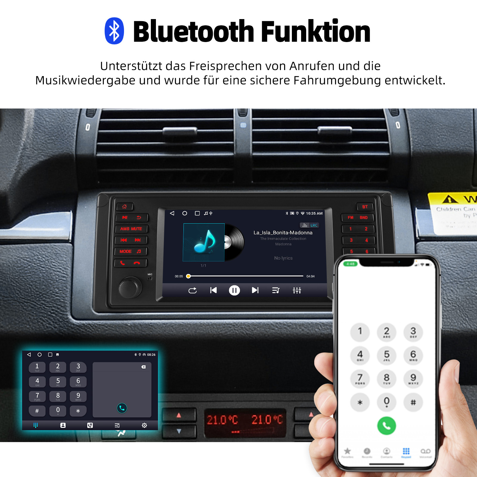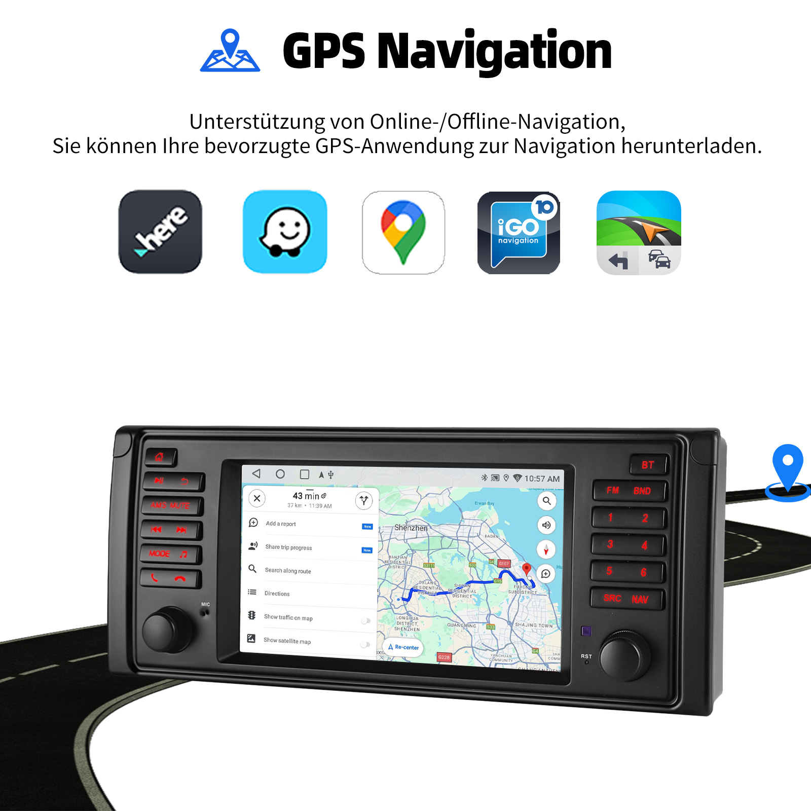 7 Zoll Android 14 Autoradio Für BMW 5er E39 M5 1996-2003: Das Android Autoradio mit 7" 1024* 600 HD IPS kapazitivem Touchscreen, 2GB RAM und 64GB ROM ermöglicht das Herunterladen Ihrer Lieblings-Apps und -Videos, damit das Autofahren nicht mehr langweilig wird. Kein zusätzlicher Rahmen, kein Kabelwechsel, Plug and Play.