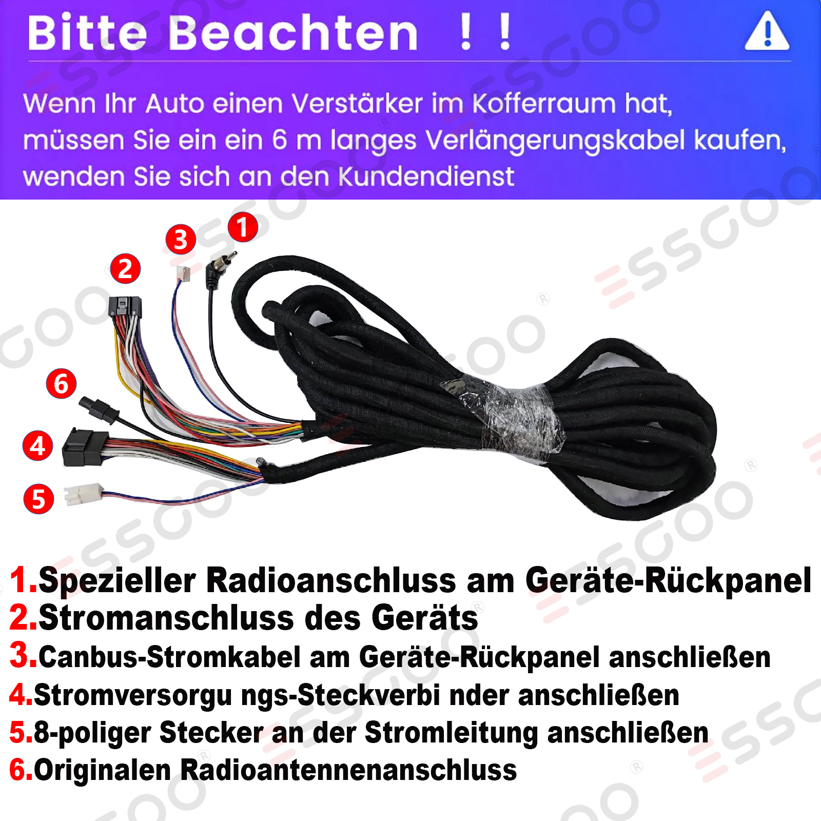 Hinweis: Wenn sich ein Verstärker im hinteren Ablagefach befindet, benötigen Sie ein 6 Meter langes Verlängerungskabel. Referenzlink:https://www.ebay.de/itm/375759263523.