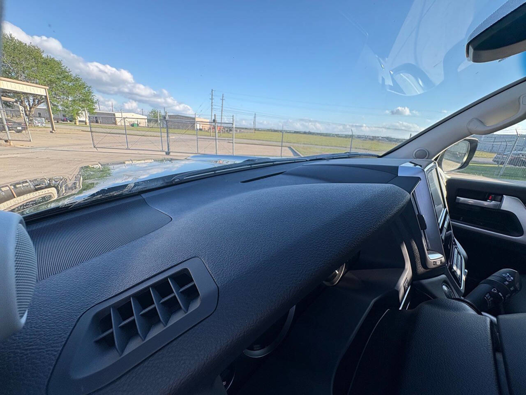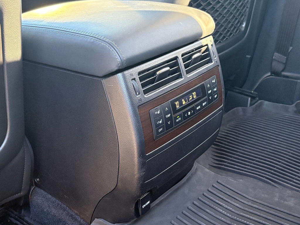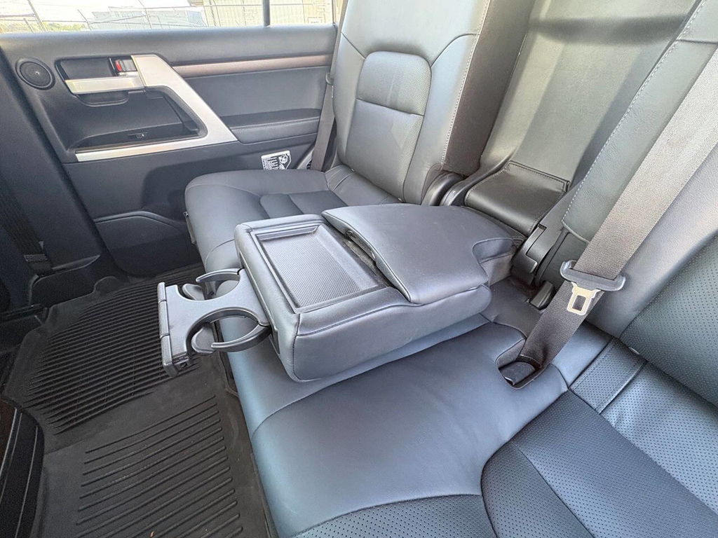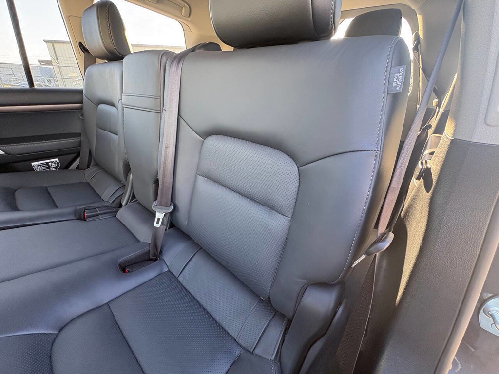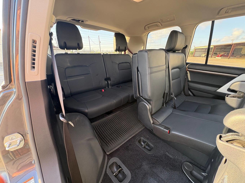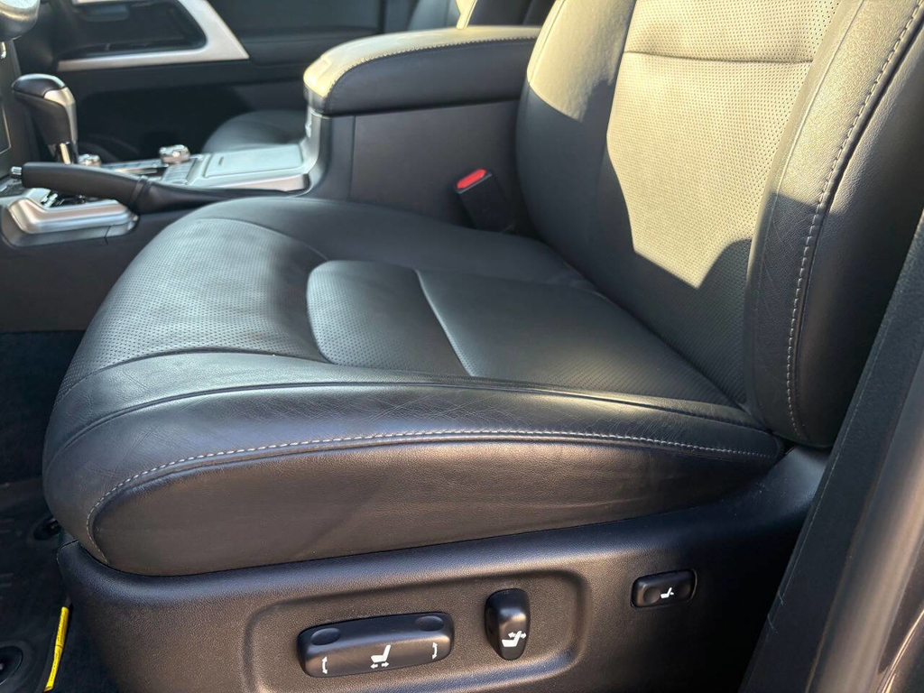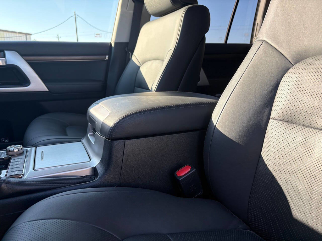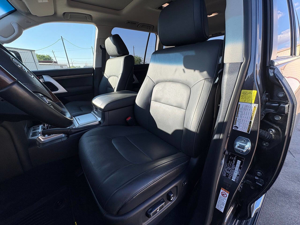 Inside, the cabin is both functional and upscale, trimmed in black leather with silver accents and designed to provide long-distance comfort in nearly any environment. The front power-adjustable seats are heated and ventilated, giving both driver and passenger a premium experience, while rear climate controls help keep passengers comfortable throughout the cabin. The power sunroof brightens the interior, and the third-row seating adds flexibility for larger families or additional passengers when needed. This Land Cruiser also delivers the commanding driving position enthusiasts appreciate, along with the solid, vault-like feel that has helped make the model so admired.