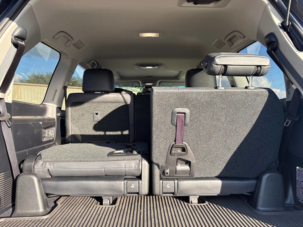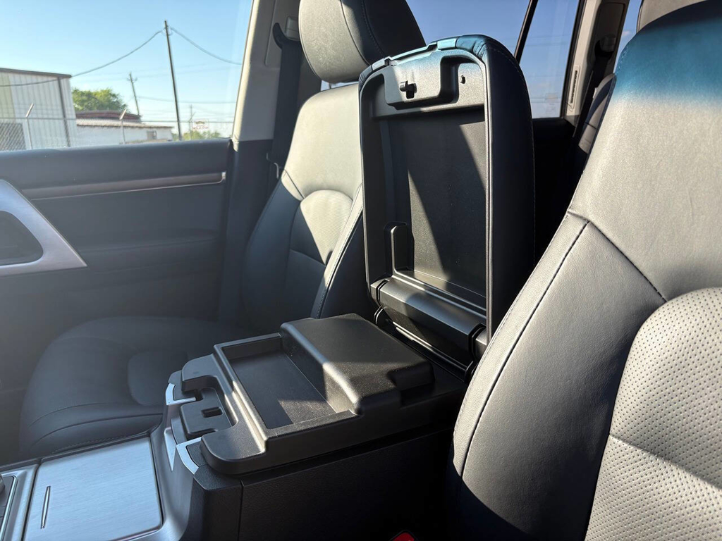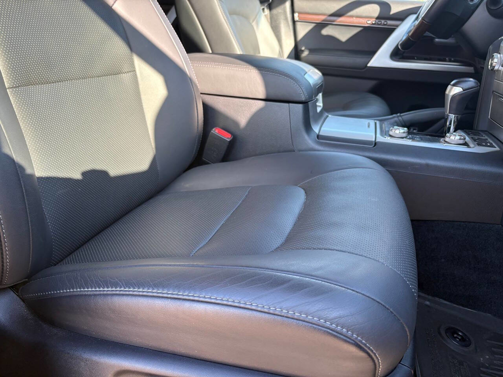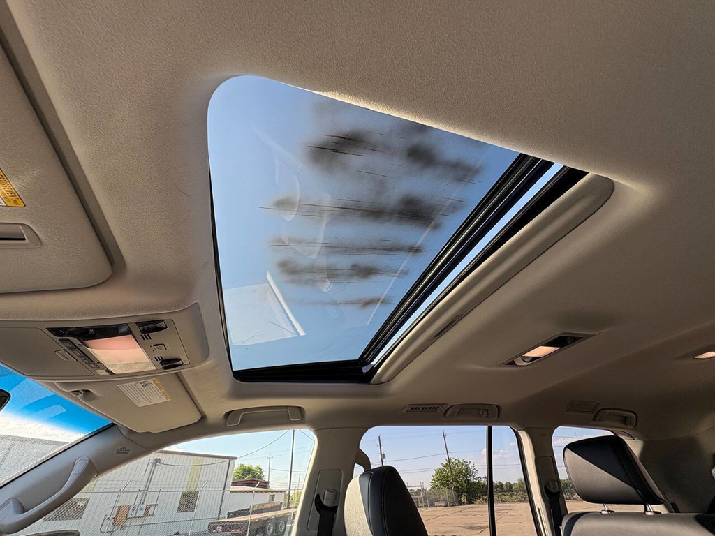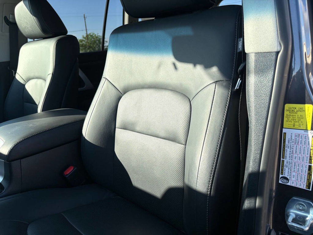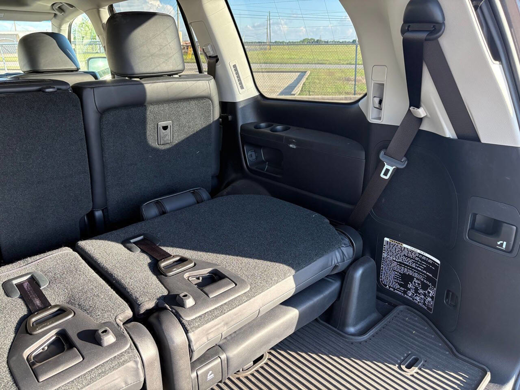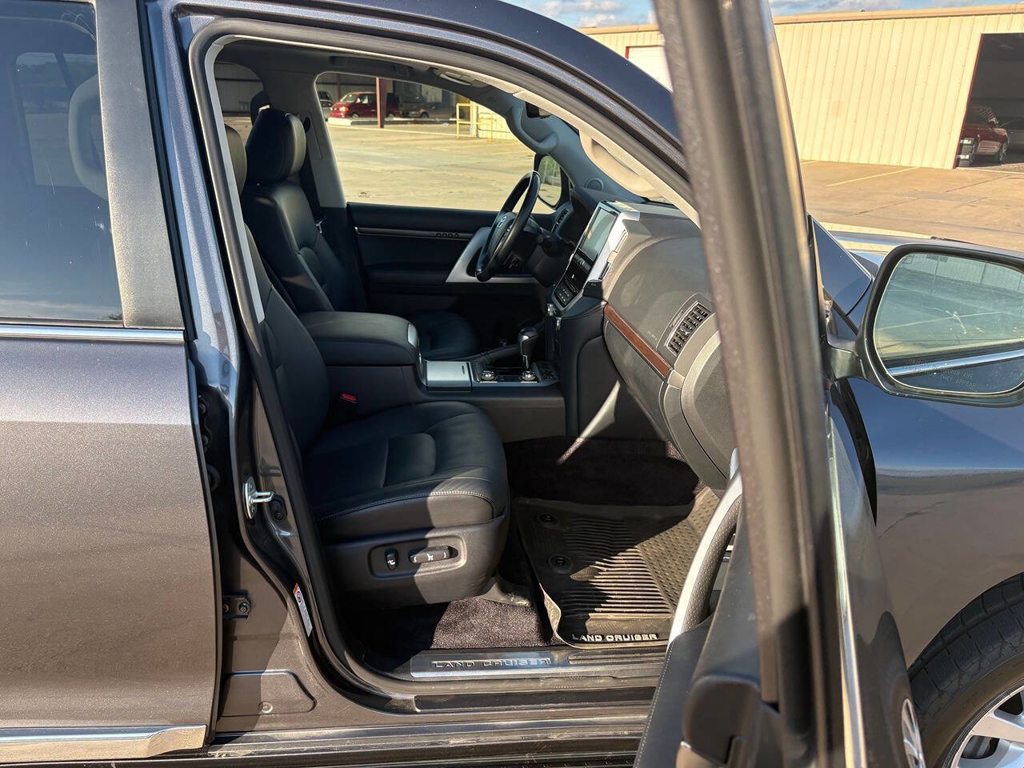 Inside, the cabin is both functional and upscale, trimmed in black leather with silver accents and designed to provide long-distance comfort in nearly any environment. The front power-adjustable seats are heated and ventilated, giving both driver and passenger a premium experience, while rear climate controls help keep passengers comfortable throughout the cabin. The power sunroof brightens the interior, and the third-row seating adds flexibility for larger families or additional passengers when needed. This Land Cruiser also delivers the commanding driving position enthusiasts appreciate, along with the solid, vault-like feel that has helped make the model so admired.