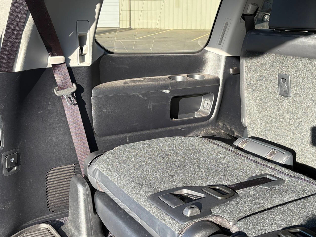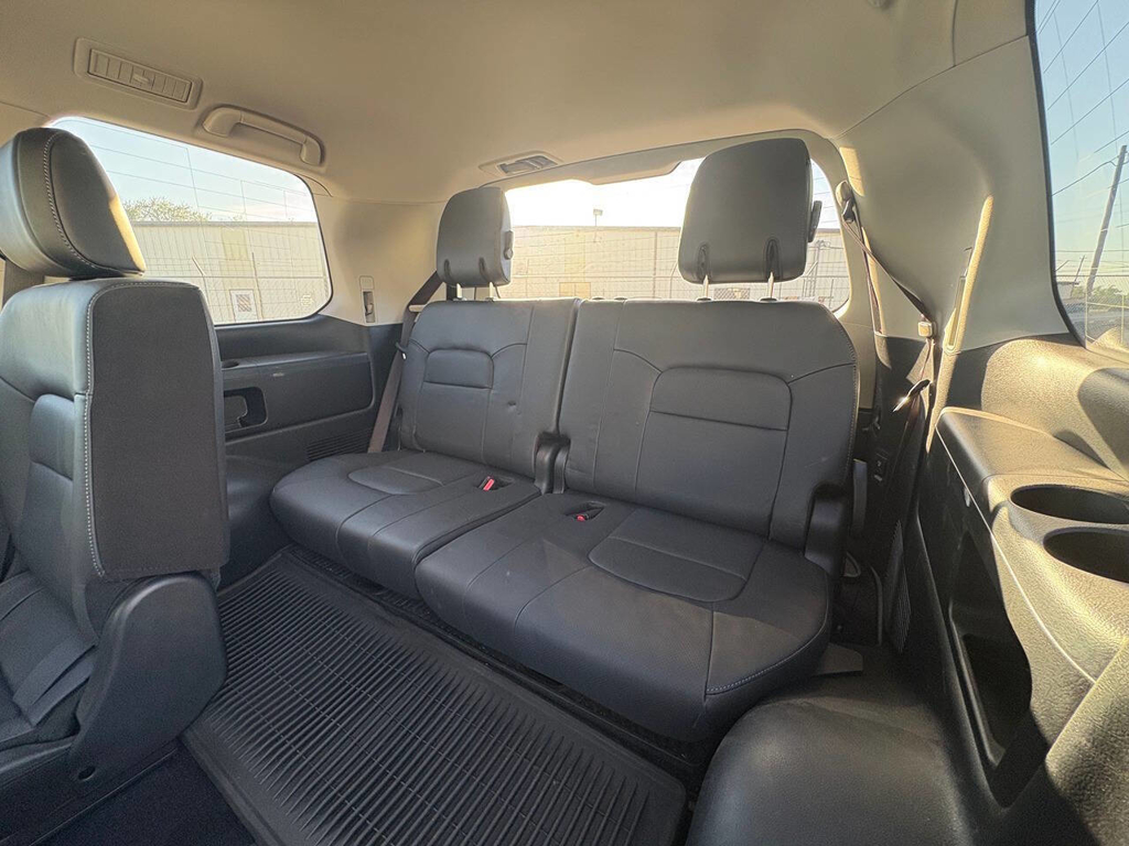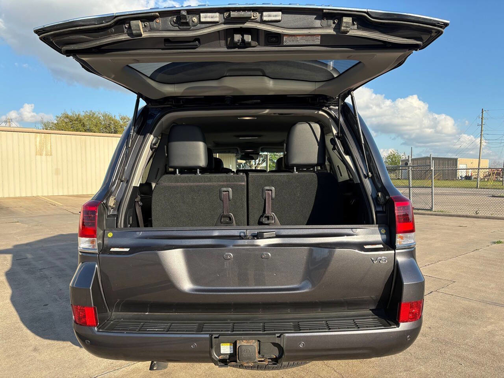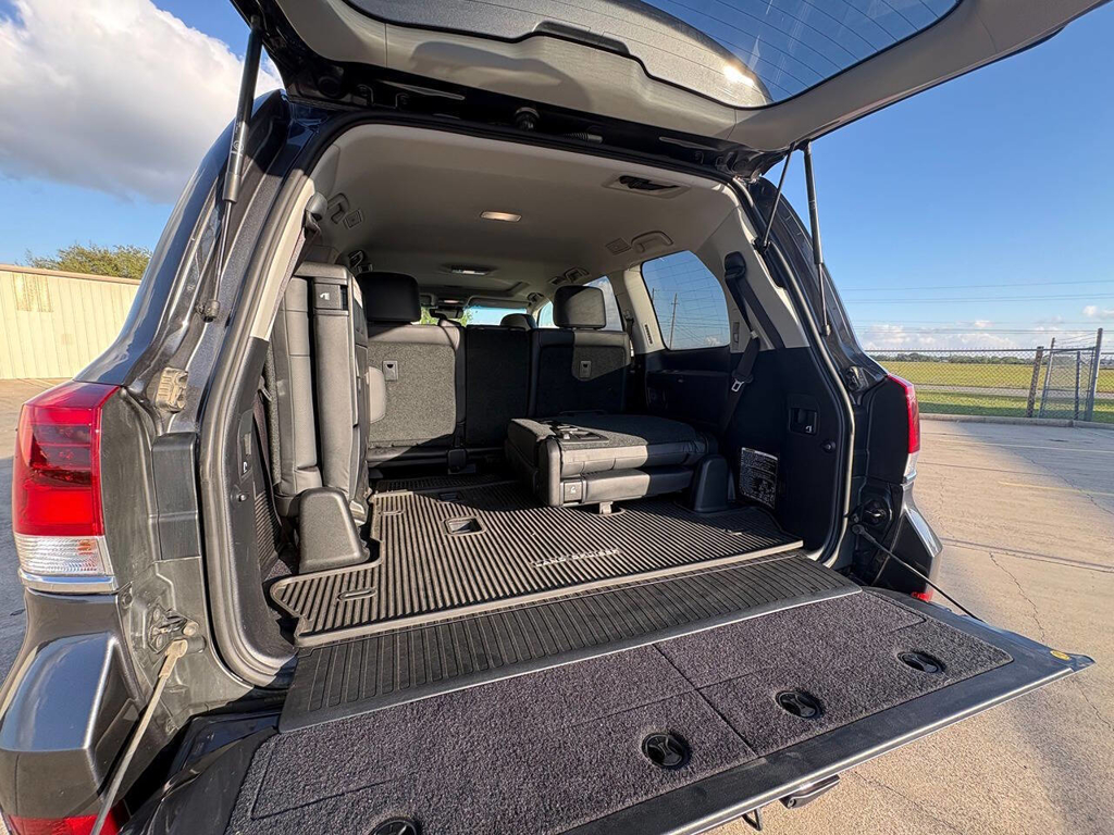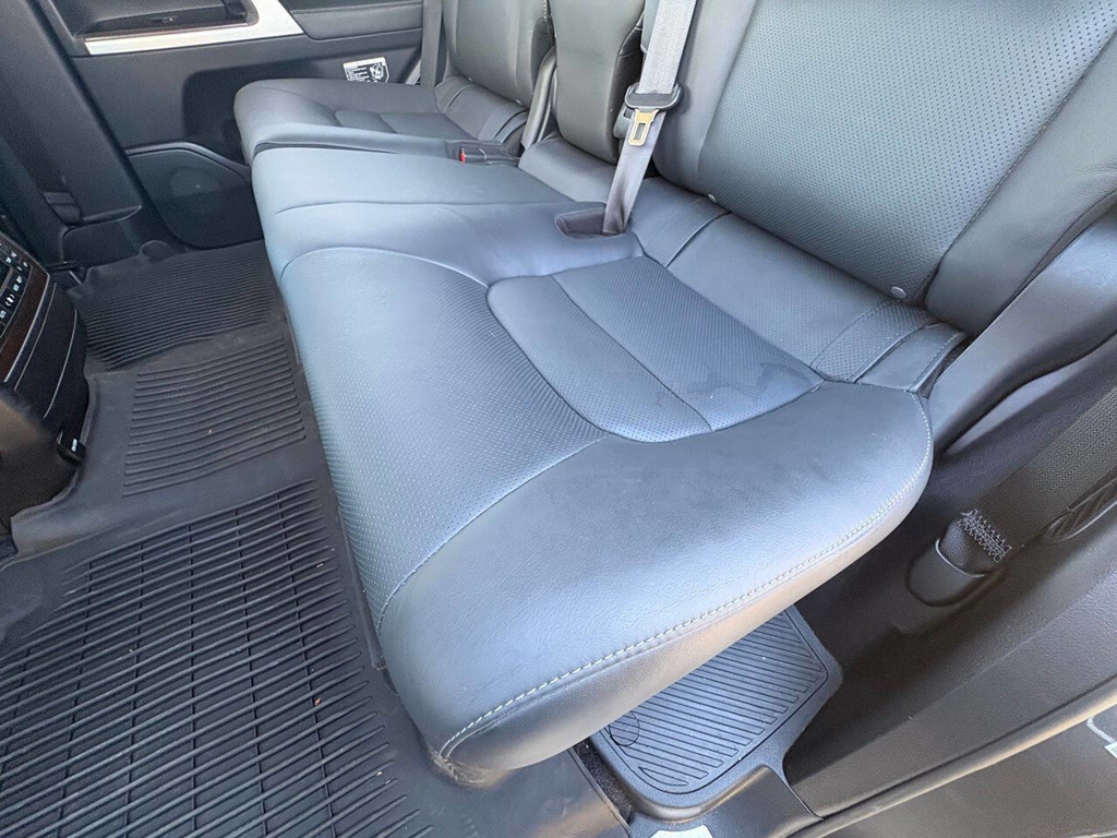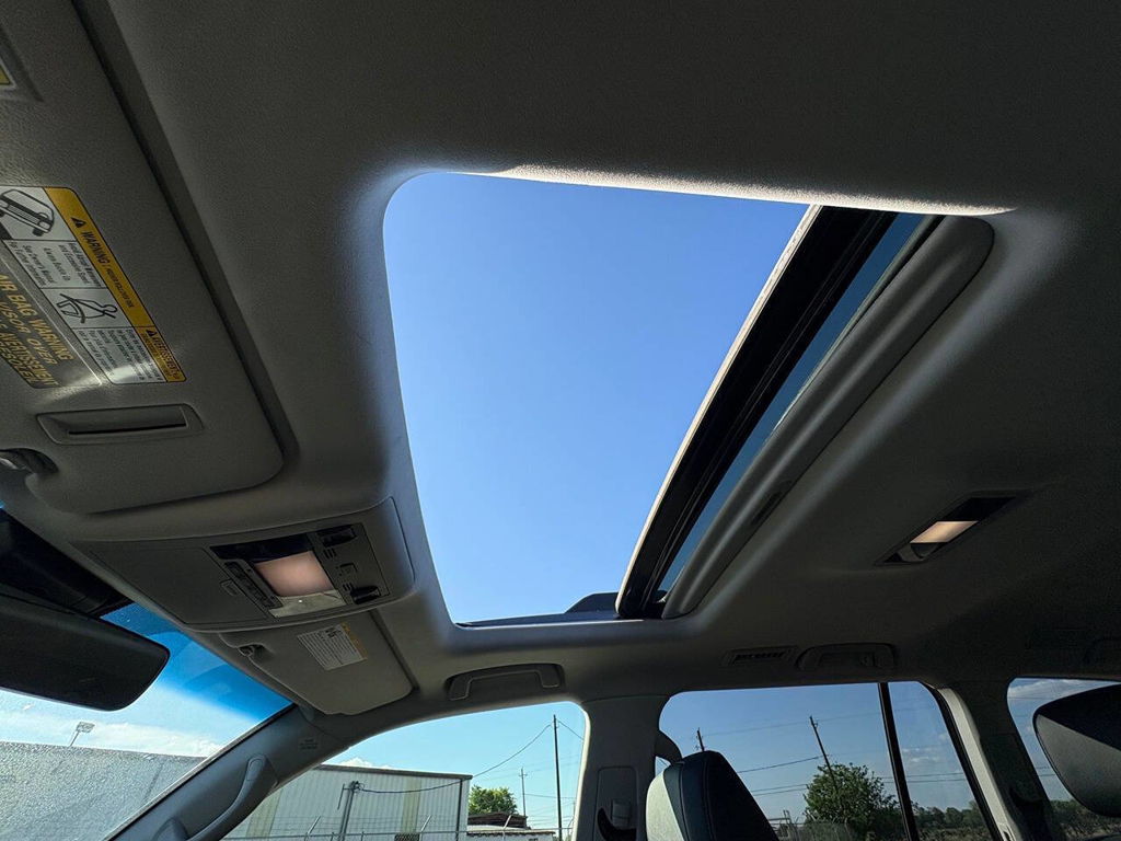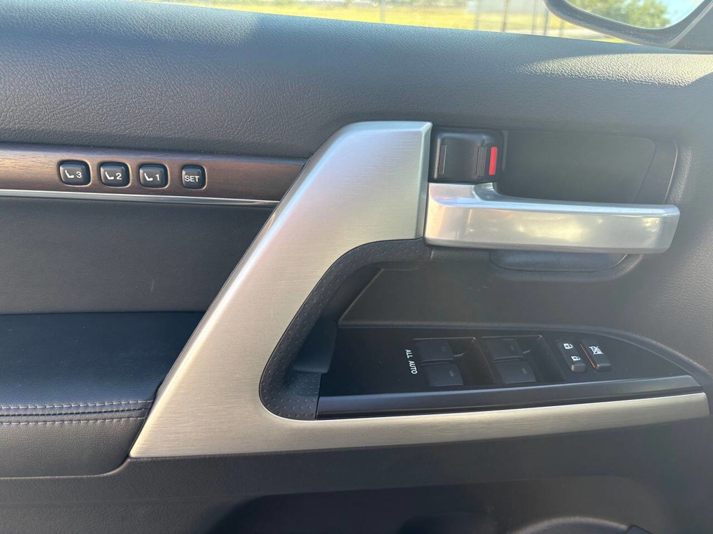 Inside, the cabin is both functional and upscale, trimmed in black leather with silver accents and designed to provide long-distance comfort in nearly any environment. The front power-adjustable seats are heated and ventilated, giving both driver and passenger a premium experience, while rear climate controls help keep passengers comfortable throughout the cabin. The power sunroof brightens the interior, and the third-row seating adds flexibility for larger families or additional passengers when needed. This Land Cruiser also delivers the commanding driving position enthusiasts appreciate, along with the solid, vault-like feel that has helped make the model so admired.