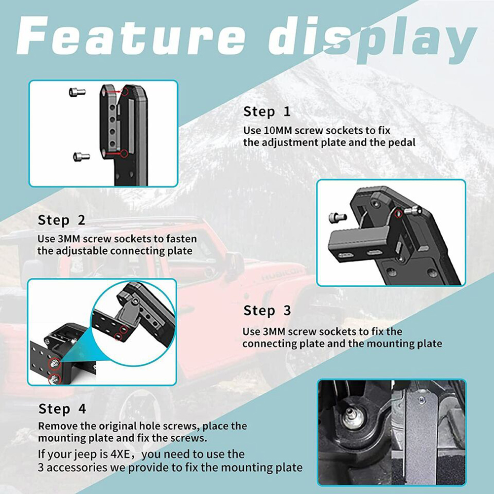 Dead Pedal Foot Rest Kick Panel For Jeep Wrangler JL JLU Gladiator JT Features: 1. Provides a high class and fashion decor style, change the ordinary interior design of the car and add unique colors. 2. Made of high-quality aluminum alloy for reliable performance. Surface metal-coated protection from rapid corrosion and rust, beautiful and durable. 3. With anti-skid hollow design that provides a comfortable stepping sense for relieving foot fatigue. Keeping your feet from slipping off the pedal, safer to use in muddy or wet conditions. 4. The angle of the foot rest pedal can be adjusted freely, suitable for different heights, to reduce the pain of the left leg during long distance driving. The driver side pedal is not easy to bend, large area contact more comfortable. 5. Installing this pedal greatly boosts your driving comfort level. Instead of resting your left foot on the floor, this pedal provides a comfortable resting platform in the same plane of your clutch pedal. At the same time, it makes your shifting a lot easier. Specification: Condition: 100% Brand New Material: Aluminum Alloy, Iron Color: Black Attachment Type: Screws, Bolt-on Placement on Vehicle: Front, Left Fitment: For Jeep Wrangler JL JLU 2018-2023 For Jeep Gladiator JT 2018-2023 Please kindly check our item description, photos and sizes, make sure this item fit for your car before place an order. Packing Included: 1 Set Foot Rest Pedal Notes: 1. All dimensions are measured by hand, there may be small deviations. 2. If you can't install, please get professional maintenance staff to help you install. 2. The real color of the item may be slightly different from the pictures shown on website caused by many factors such as brightness of your monitor and light brightness.