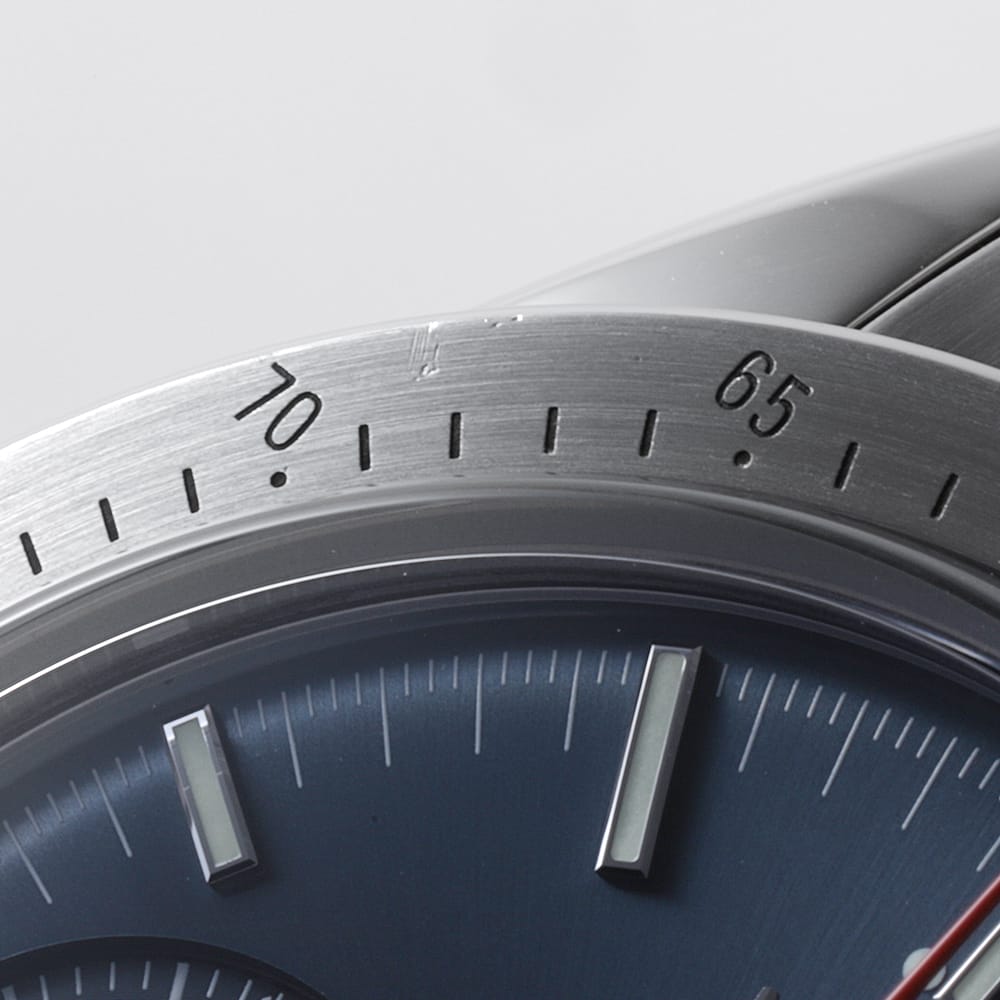 overhaul/polishsd (at Our store April 2026) Case Damage:There are a few small scratches left, but it is in good condition with little signs of use. Bezel Damage:There is a small scratch at the 10 o'clock position, but otherwise there are no noticeable scratches or damage and it is in good condition. Glass damage:It is in good condition with no noticeable scratches or damage. Needle/Dial damage:It is in good condition with no noticeable scratches or damage. Belt damage:The bracelet has a few small scratches, but is in good condition with little signs of use. The buckle has some scratches, but they are not noticeable when worn. |