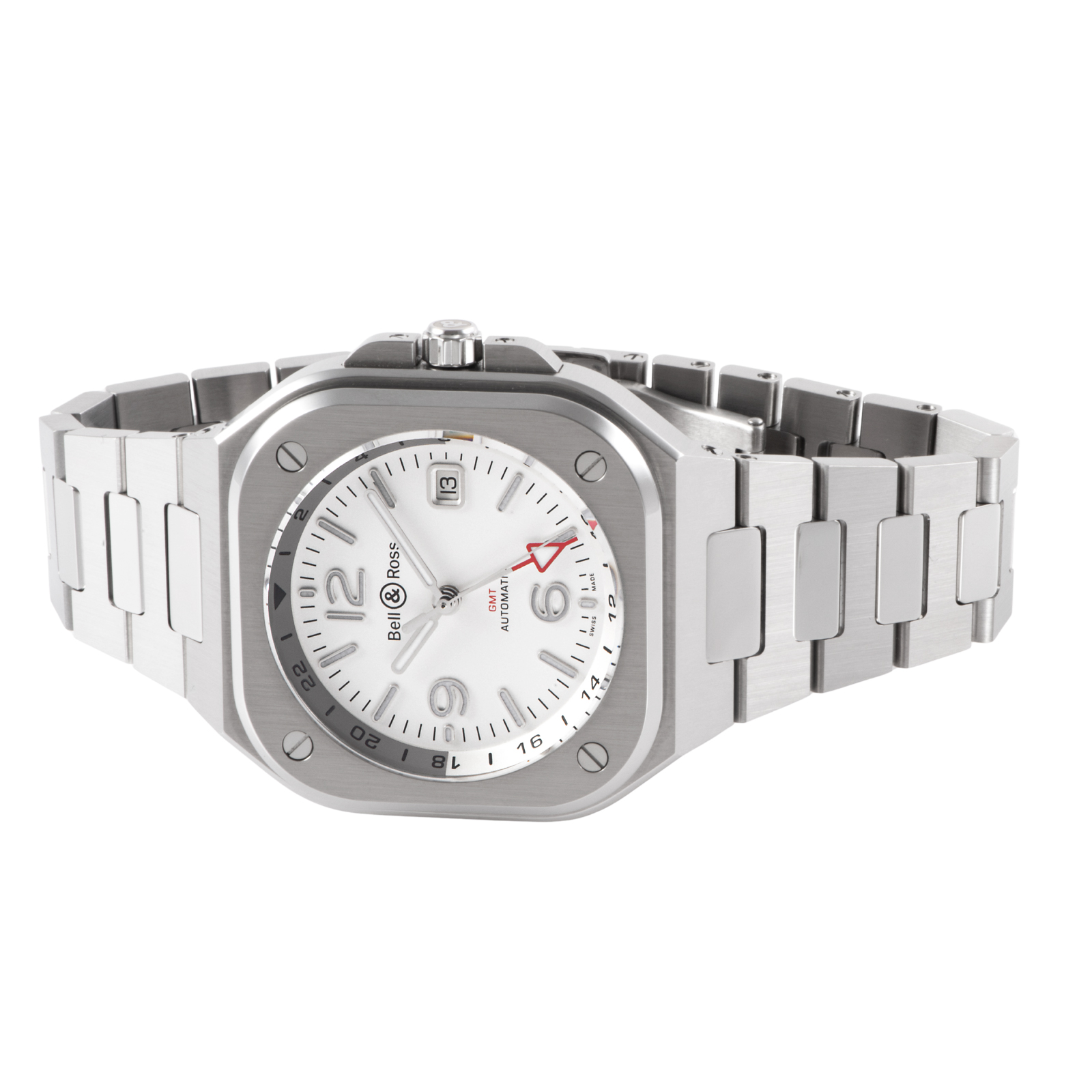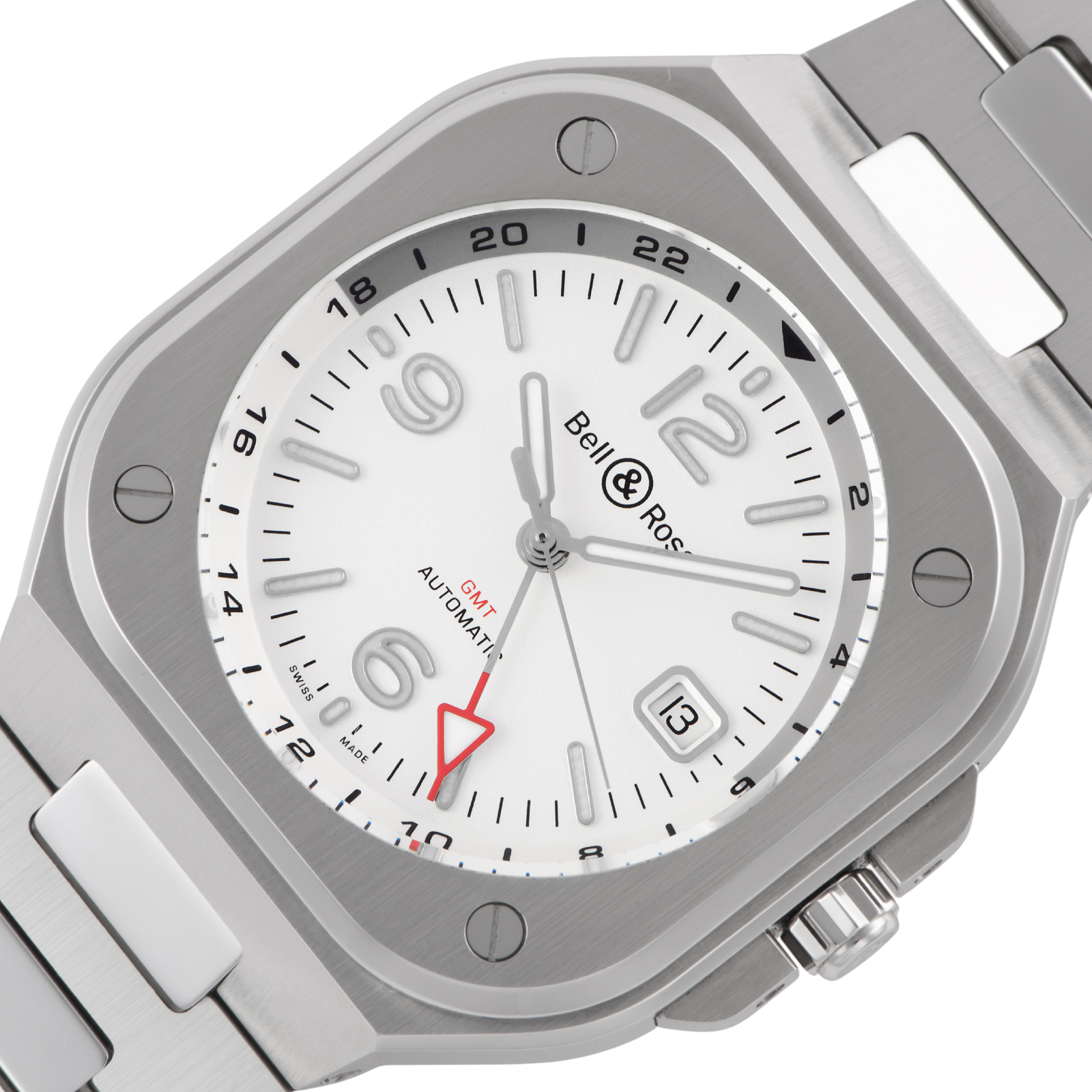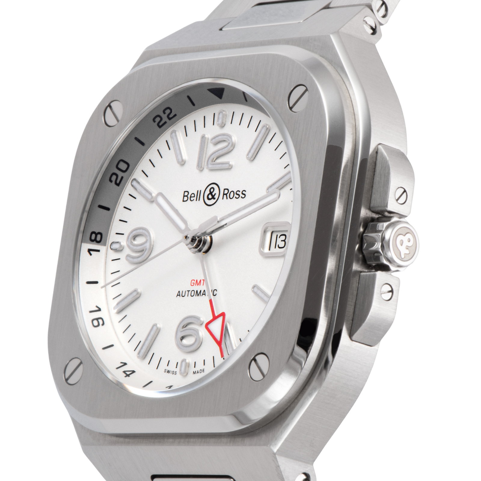 | item Description | This 1.6" diameter stainless steel model has its roots in the visibility of aircraft instruments. The contrast between the matte-finish opaline white dial and the Super-LumiNova coated indices allows for instant time reading in any lighting conditions. The GMT hand indicating the second time zone and the two-tone inner bezel with color-coded day and night sections support practical information transmission. |