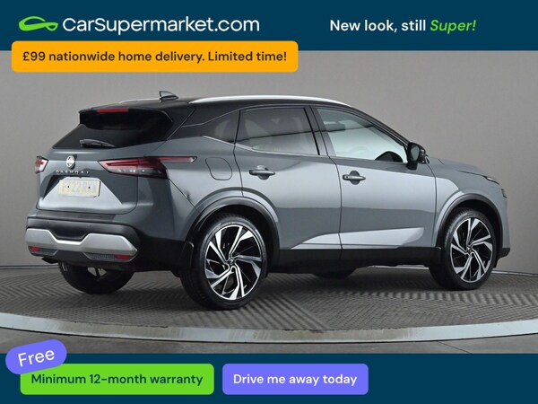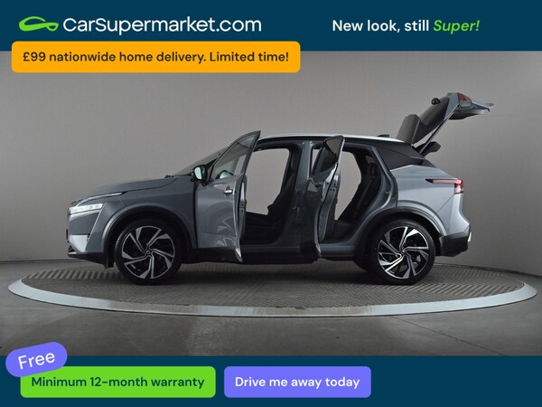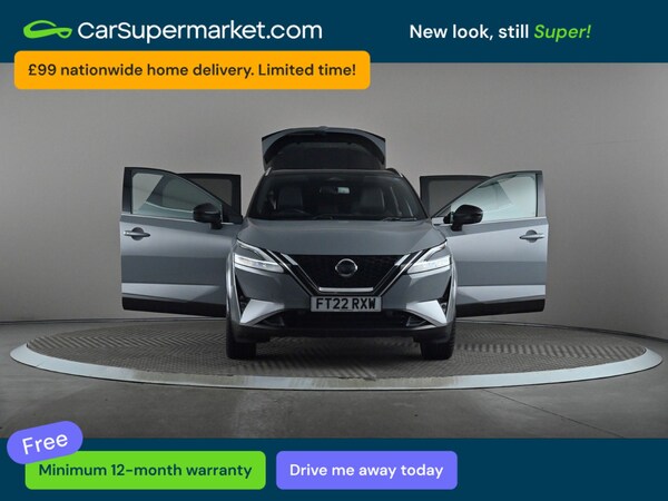 Nissan Qashqai 1.3 DiG-T MH 158 Tekna+ Xtronic (Grey) A high-spec SUV offering comfort, efficiency and advanced technology. Includes blind spot monitoring, parking sensors, cruise control, lane departure warning, satellite navigation, traffic sign recognition, wireless phone charging, Bluetooth, privacy glass, automatic climate control, Apple CarPlay and Android Auto. Supplied with a 159-point inspection and a minimum 12-month warranty. Last service 20/01/2026. MOT due 09/03/2027.