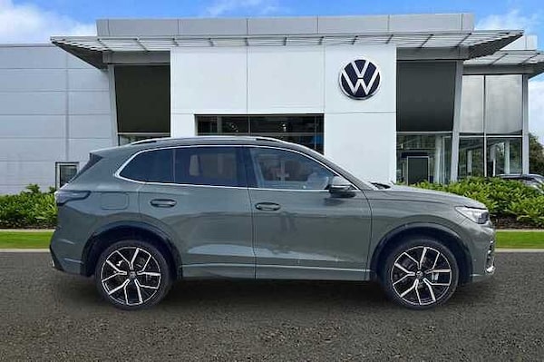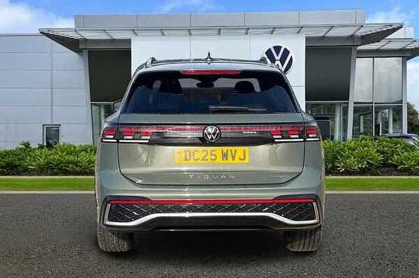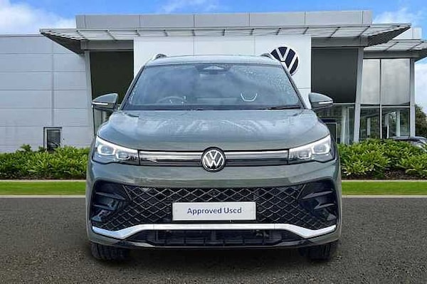 Rear window wiper, DAB radio, Air conditioning, Bluetooth, Brake assistant, Cruise control, Rain sensor, Active brake assist, Adaptive cruise control, 2x Front airbags (driver + passenger), Front wheel drive, Artificial leather material, 5 seats, Ambient lighting, Centre arm rest, Divided back seats, ISOFIX Child seat fastener, Leather, Sport seat, Right-hand drive, Delivery from 12.02.2026, 5 doors, Heated front window, Speed limit: 134 mph Interior Features, Greyson sports cloth upholstery with inner side bolsters in artvelours, Packs, Driver assistance package - Tiguan, Infotainment package plus - Tiguan, IQ.LIGHT - HD matrix headlights pack - Tiguan R-Line, Paint - Metallic, Metallic - Cipressino green Exterior Features, Heat insulating glass in side and rear windows, Heated rear window, Heated windscreen washer jets, Laminated safety glass windshield, Rain sensor windscreen wipers, Rear wiper, Adaptive chassis control DCC pro includes driving mode selection, Front shock absorption, Front wheel drive, Rear shock absorption, Air intake with Chrome trim, Body coloured door handles, Chrome moldings on the side windows, Illuminated door handle recesses, Rear side wing doors, Ambient lighting with logo projection, Automatic headlight control system, Coming/leaving home lighting function, High level 3rd brake light, Illuminated lightline between headlamps, LED Day time running light, Rear fog light on one side, reversing light on both sides, Safety, Electronic parking brake with auto hold, Front disc brakes, Rear disc brakes, Adaptive cruise control (ACC), Advanced driver attention and drowsiness monitor, Dynamic road sign display, Front Assist - Autonomous emergency braking with pedestrian and cyclist monitoring, Lane change system, Side assist, Rear traffic alert and Exit warning system, Lane keeping system Lane Assist, Oncoming vehicle braking when turning including swerve support, Park assistance plus with front and rear parking sensors, Power assisted steering with speed sensitive, Auto dimming interior rear view mirror, Puddle lights and reverse activated passengers door mirror, 3 point seat belt for centre rear seats, 3 Point seat belts in front with pretensioners, 3 point seatbelts in outer rear with ECE label, Driver and front passenger airbag with front passenger airbag deactivation, Front and rear curtain airbags, Front and rear side airbags, Front centre airbag, Manual child proof rear door locks, Two tone horn, Warning triangle, Interior Features, Air care climatronic 3 zone air conditioning system with rear air conditioning control panel, 12V outlet in center console rear and in luggage compartment, 12V socket in centre console, Black roof lining, Brushed stainless steel pedals, Centre console with illuminated storage compartment with sliding cover and two drinks holders, Chrome elements on the mirror switch and power window switches and door pulls, Door and side trim panel with leatherette insert, Door sill protectors, Front centre armrest, Soul headlining, Variable luggage compartment floor, Interior ambient lighting with 30 colour options, Sun visors with illuminated vanity mirrors, Audio / Communications, Bluetooth mobile phone interface, E-Sim card for online connectivity, Wireless App-Connect, Digital radio reception (DAB), Diversity antenna for FM reception, Driver Convenience, Car2X technology, Start/stop system with regenerative braking, Miscellaneous, Digital Cockpit Pro - 10.25"" high resolution dash display screen with customisable menus and information, eCall emergency call service, Warning signal and warning light for front and rear seatbelts not fastened, Trim, Decorative inserts, Interior door handle in matte chrome, Soul instrument panel, 3 bench rear seats in 2nd row, ISOFIX anchors for child seats on outer rear seats and front passenger seat compatible with i-Size, Mechanical rear seat release, Power adjustable lumbar support in front, Rear bench seat, split folding, longitudinally movable and folding with load-through hatch and centre armrest, Single front passenger seat, Sports comfort seats in front, Three rear head restraints, Vehicle Charging, Charging cable Mode 3 Type 2 / 3 (16A), Wheels, Tyre mobility kit including compressor and sealing foam