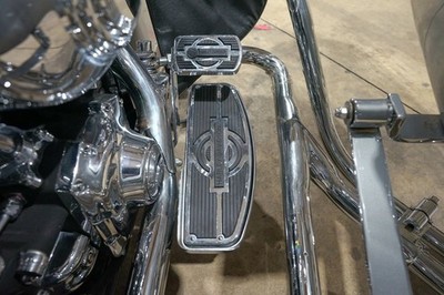 Finished in a striking Sterling Silver and Vivid Black, the 100th anniversaries included a touring sidecar with all chrome attachments, giving the bike a modern yet classic look. This motorcycle includes white wall wheels, chrome spokes, forks, engine guards, twin pipes, saddle guards, wheel guard accents, and handlebars to add to the classic look. Matched with this is all leather side car seat, saddlebags, and optional quick release backrest for the long cruises.