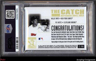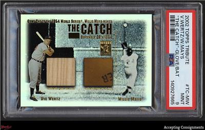 2002 Topps Tribute Catch Dual Vic Wertz Willie Mays GAME USED GLOVE BAT PSA 9