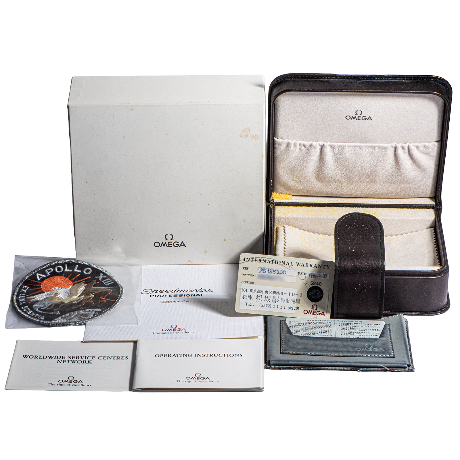Box, warranty card (February 1996, Japan), patch |
