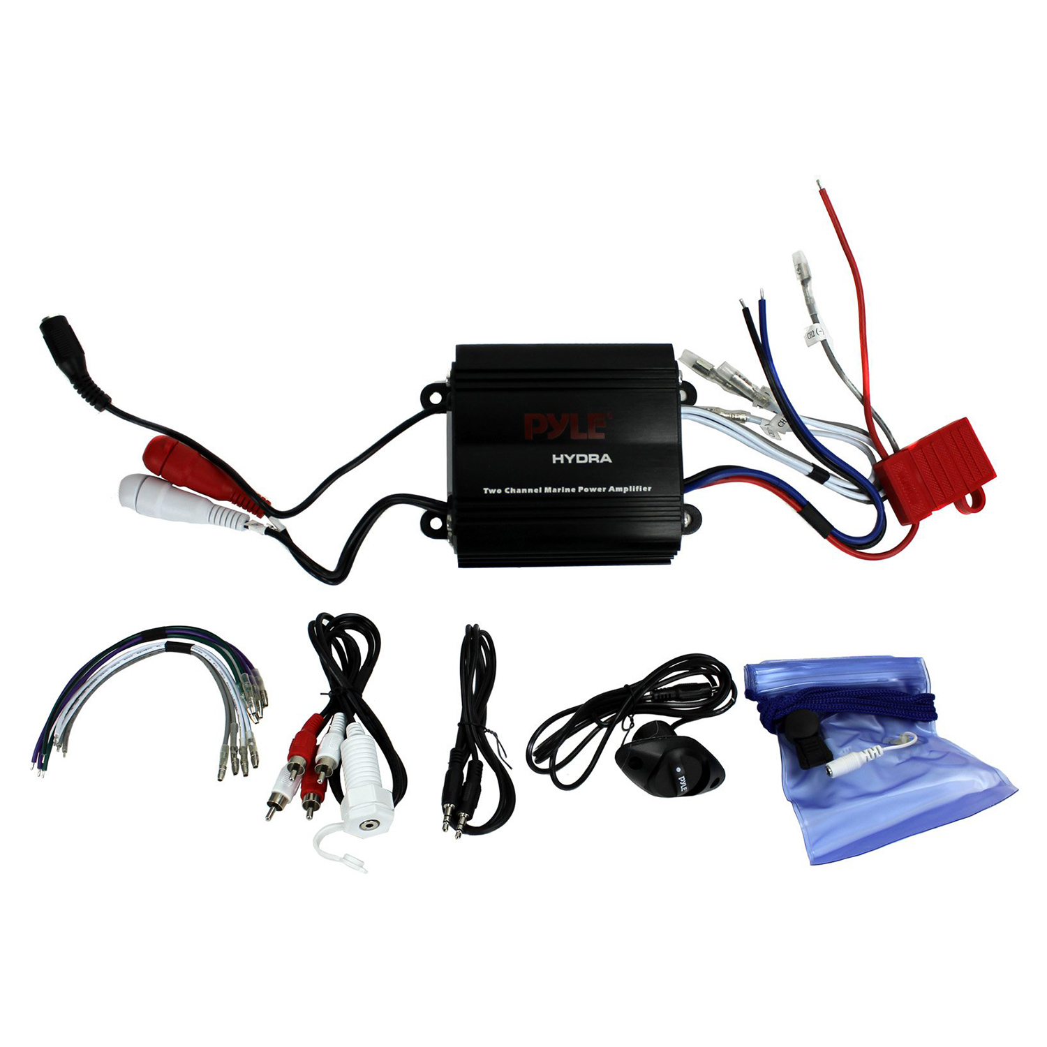 The Pyle PLMRMP3B is a compact and waterproof 4-Channel Marine Amplifier designed for mounting possibilities in numerous applications and makes it simple to expand the audio system capabilities for your vehicle - perfect for your boat, ATV or RV.