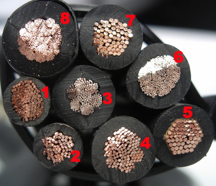 8) the HICAP II 1666 strand 4 GA - all the other leads are substantially smaller actual gauge due to their low strand counts - low strand count = cheap wire
